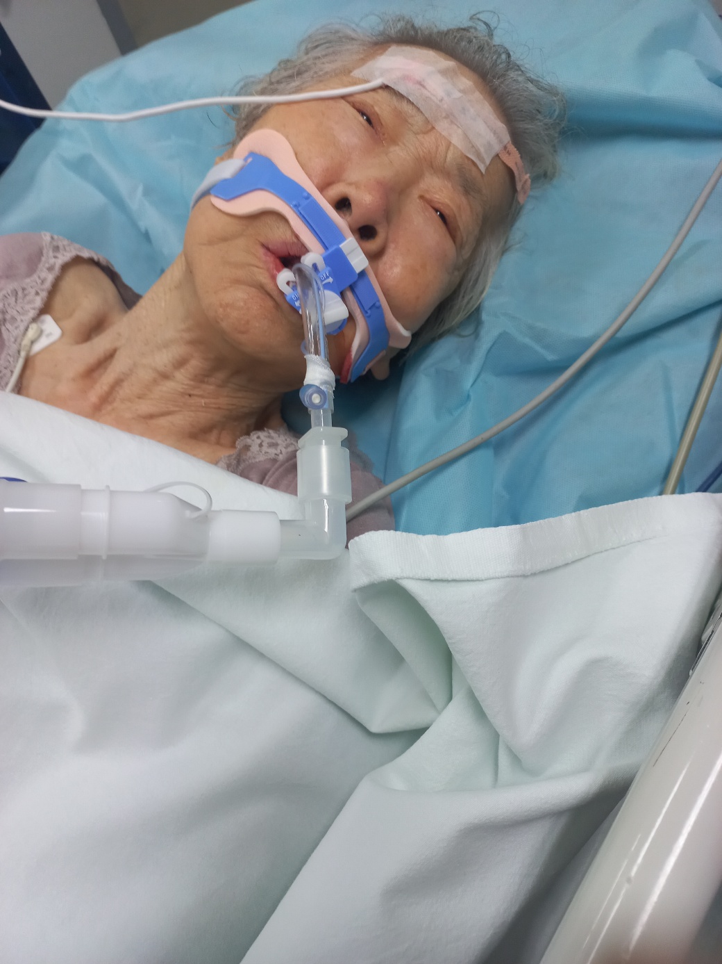 지금 어머니께서는 스스로 호흡을 할 수 없는 상태이다.