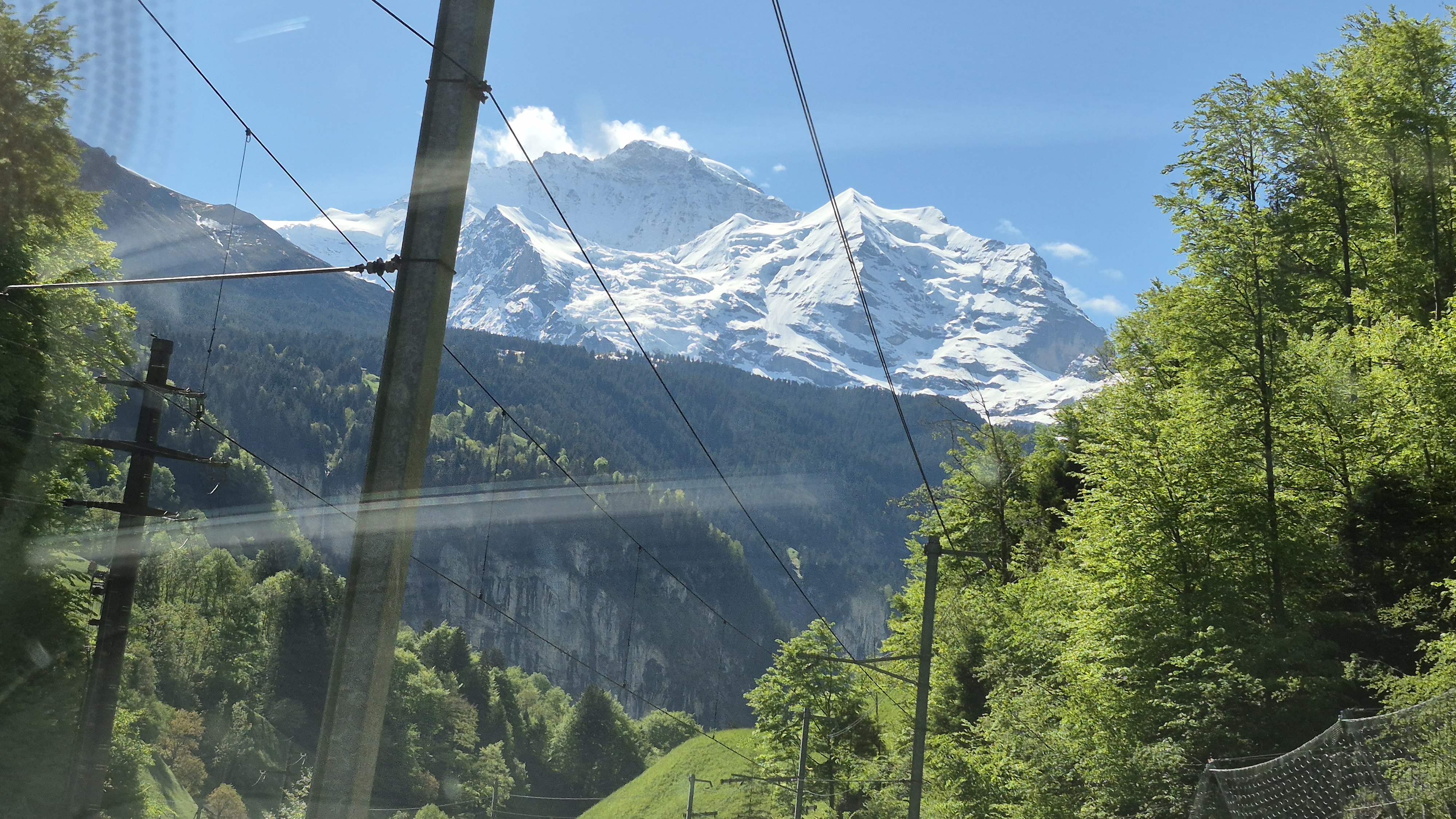 인터라켄을 지나서 가니 융프라우와 아이거 북벽이 더욱 선명하게 보인다.