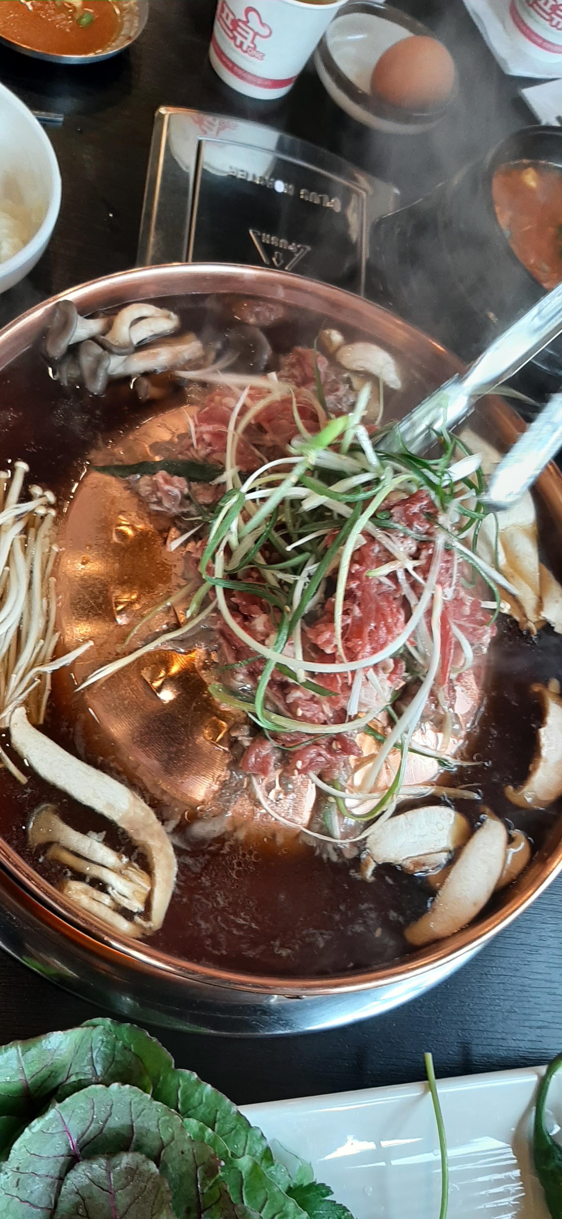 가게는 넓고, 손님들도 많이 있고, 셀프코너에 야채와 반찬들이 있다. 야채를 좋아하는 나는 깻잎, 상추, 마늘을 많이 가져왔다. 참고로 나는 식당에 가면, 내가 가져온 반찬은 남기지 않고, 다 먹는다.