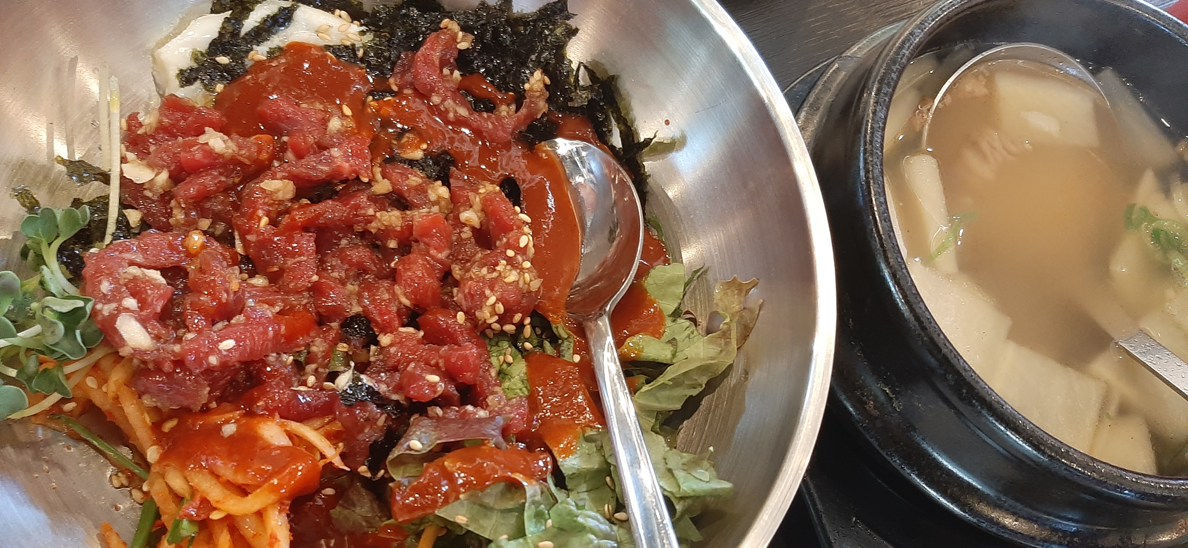 우리가 주문한 갈비탕, 육회비빔밥이 나오고, 어머니께서 갈비탕 국물을 맛나게 드시니, 내가 기분이 좋다.