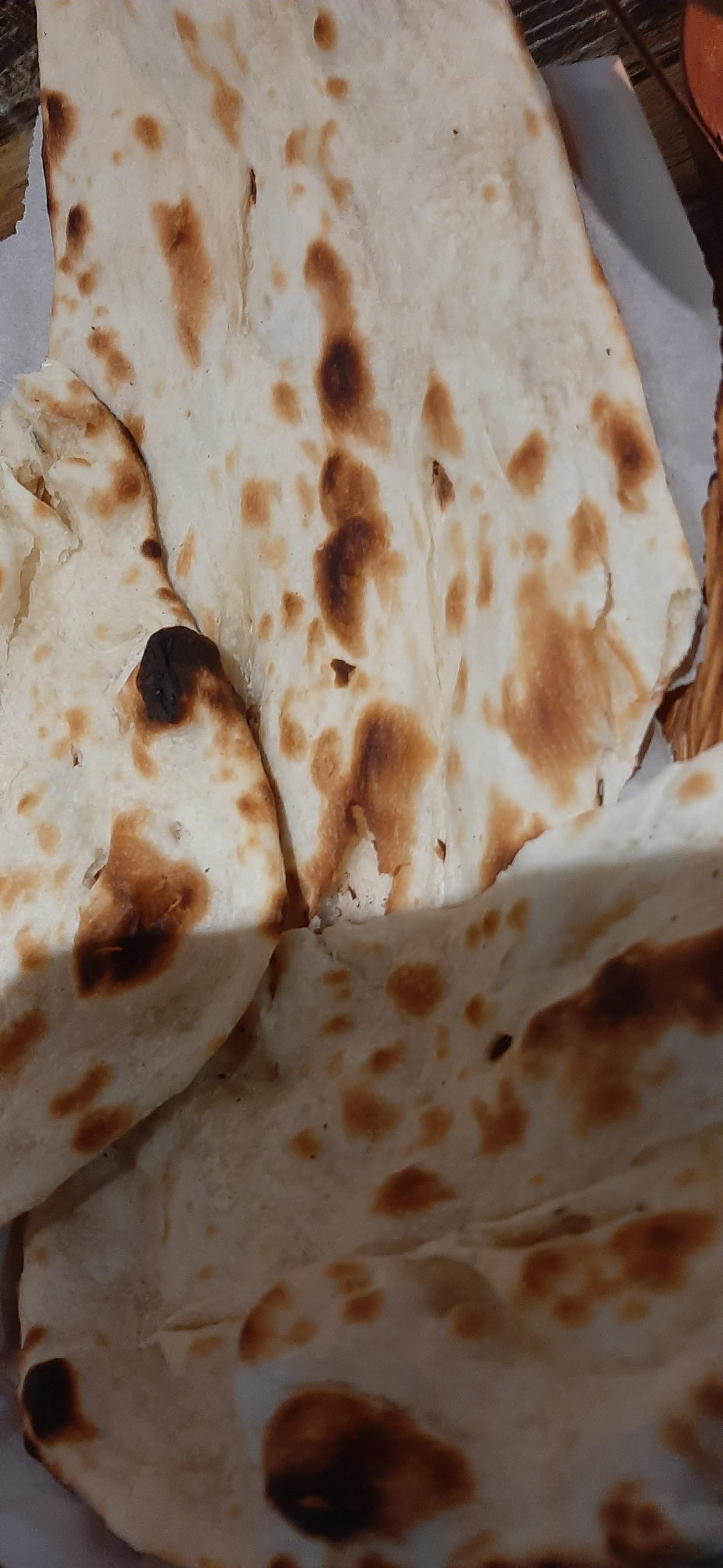 잠시 기다리니 우리가 주문한 음식이 나오고, 아들이 자연스럽게 손으로 난을 찢어서 비프 반달루에 찍어서 먹길래, 나도 아들을 따라서, 마치 전에 여러 번 먹어본 사람처럼 자연스럽게 손으로 난을 뜯어서 비프 반달루를 찍어서 먹는다.