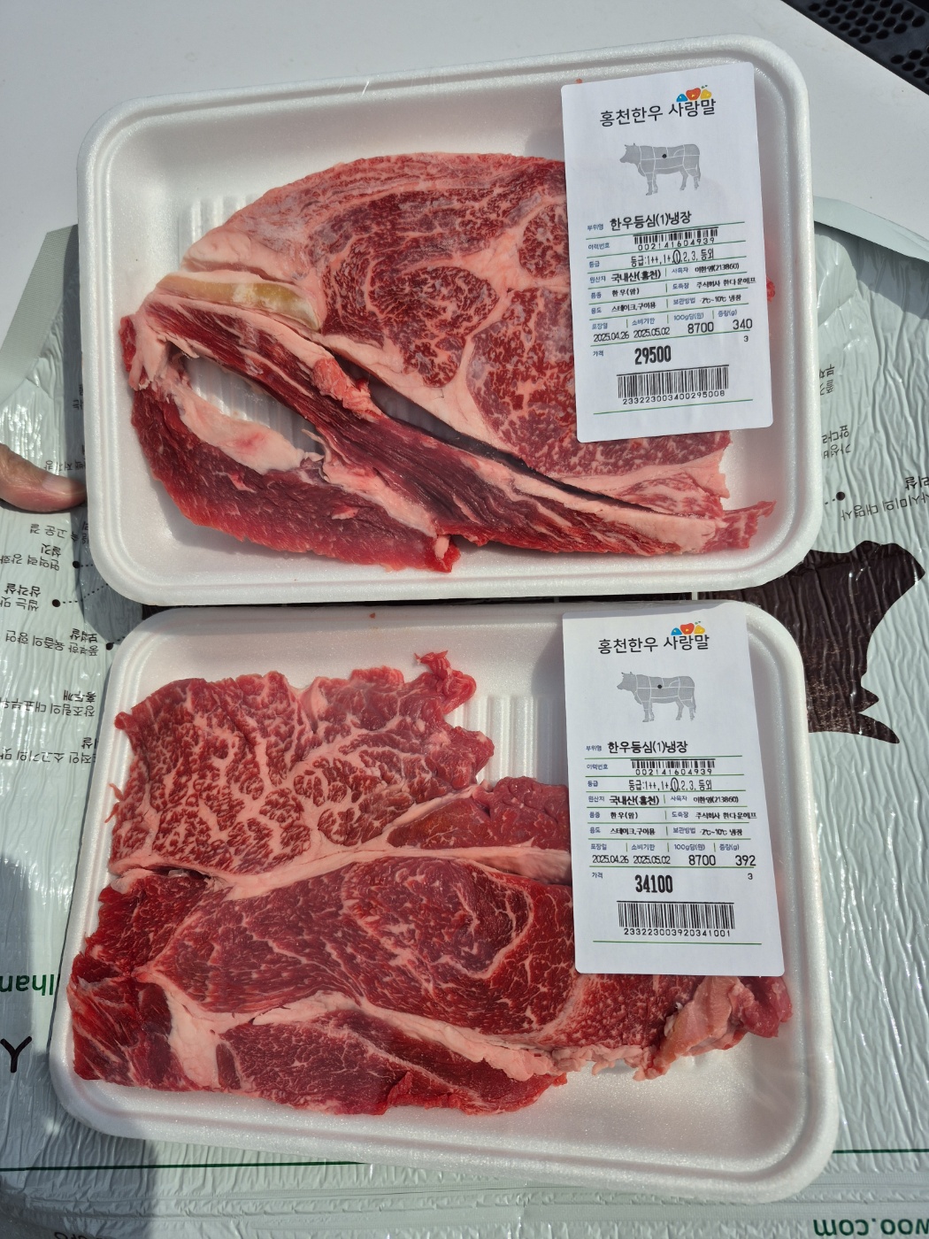홍천한우가 맛있다고 하여 홍천한우 사랑말에서 소고기 등심을 산다.
