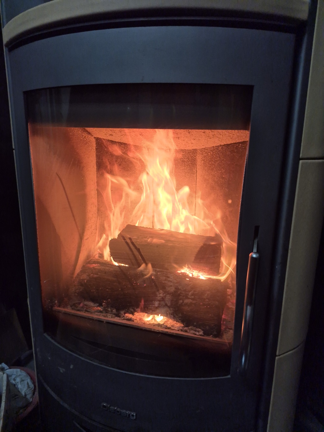 후배가 사는 고원로 집은 해발 450미터이고, 저녁이 되니 쌀쌀하여, 후배가 장작을 가져와서 Olsberg 벽난로에 불을 지핀다.