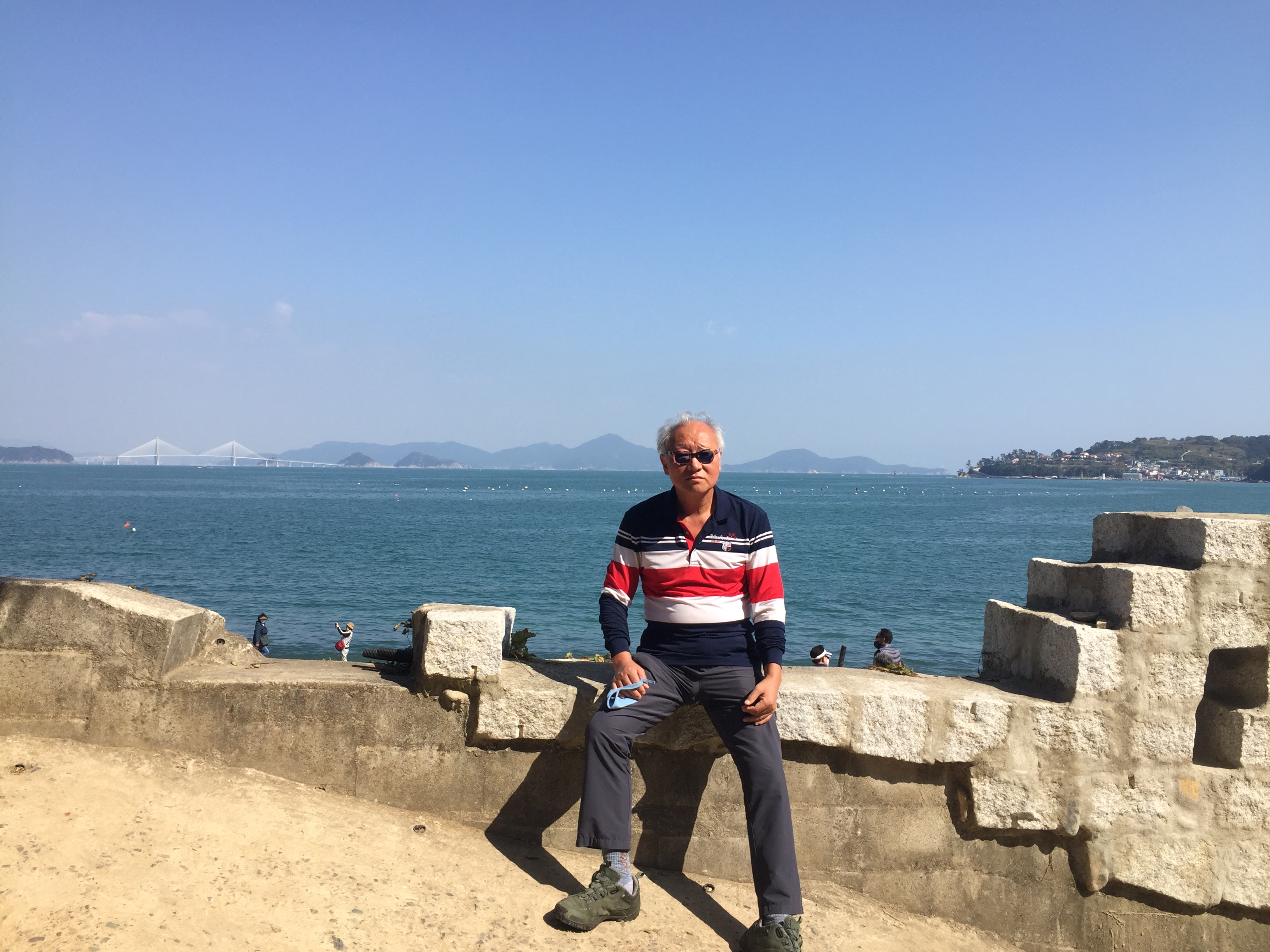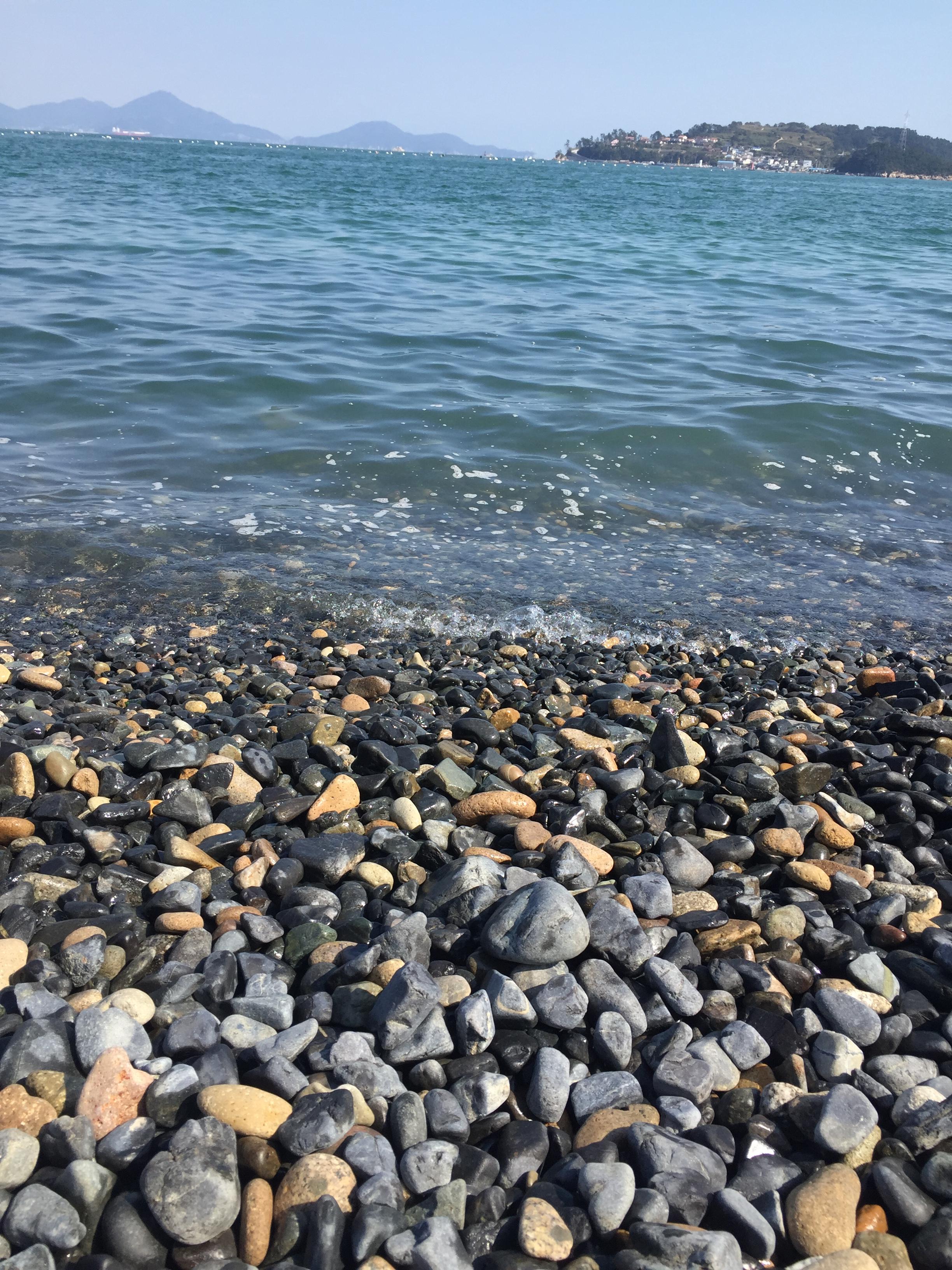 매미성 앞에 몽돌해변에서 홍이 몽돌이 파도에 부딪치는 소리를 녹음한다. 나중에 들어보니 녹음이 너무 잘 되어서 내가 홍벌레라고 별명을 지었다. 김벌레 교수님은 음향으로는 세계 최고의 실력자이다. 그분의 이름을 내가 홍에게 붙여주었다.