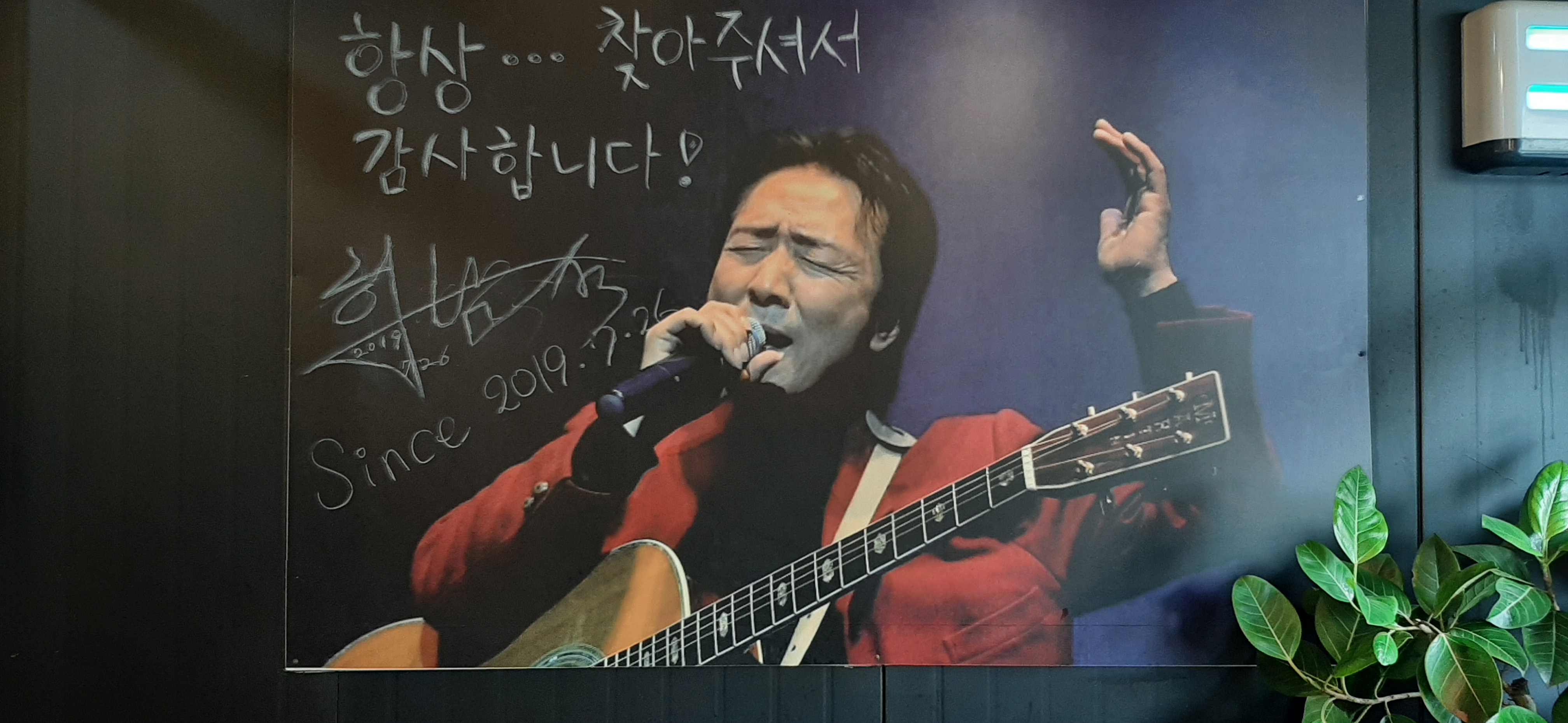 가게에 들어가면, 가게 주인인 가수 하남석 님께서 노래하는 사진과 방문객들의 사인이 많이 있다. 가수 하남석 님은 내가 젊은 시절에 아주 유명한 가수이다. 지금도 활동을 하신다. 내가 영수증에 나온 이름과 다르다고 하니, 영수증이 본명이고 하남석은 예명이라고 하신다. 내가 젊어서 좋아하던 가수를 만나니 기분이 좋고, 가수 하남석님의 히트 송 밤에 떠난 여인을 낮은 소리로 불러본다.
