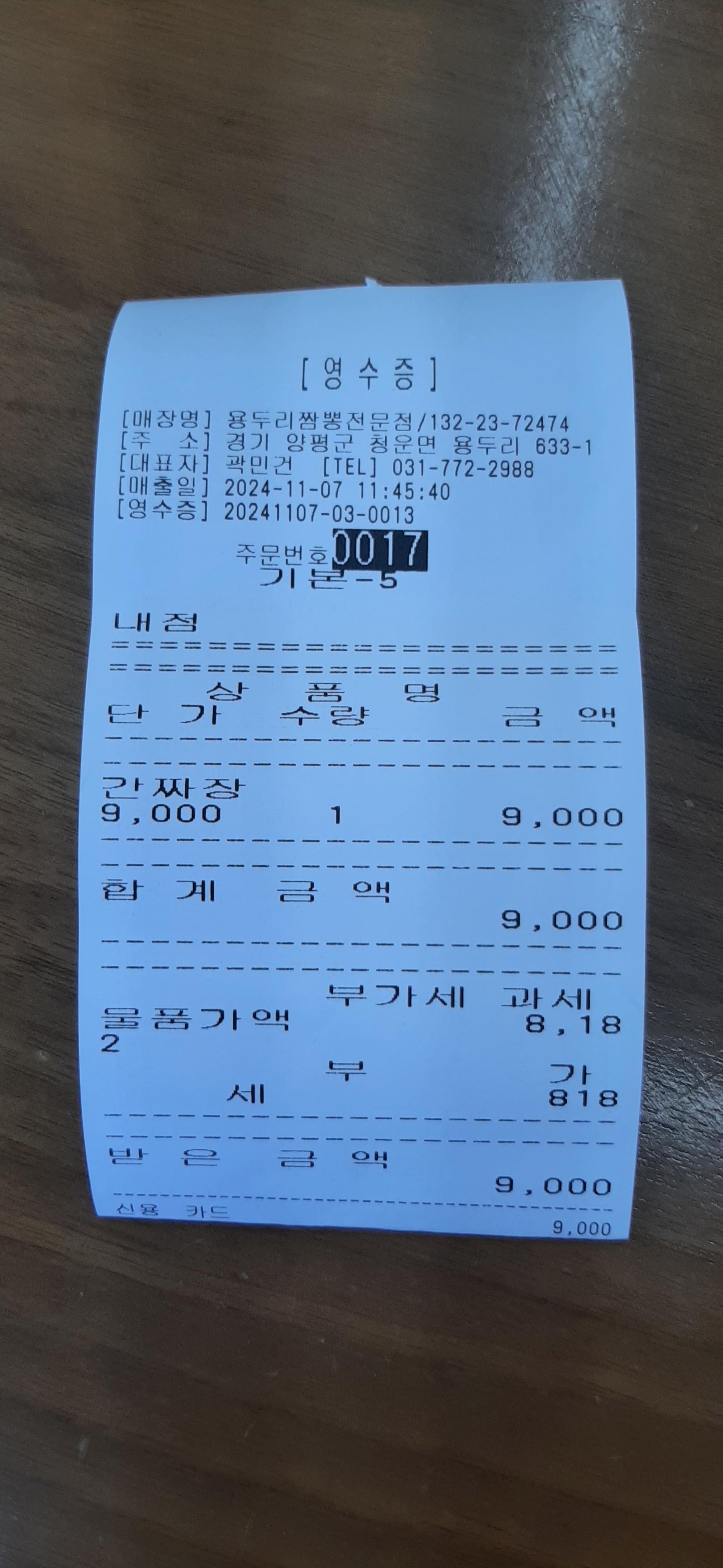용두리 짬뽕 전문점은 기존의 가게를 헐고 새로 지어서 영업을 시작한 지 약 1년 정도 된다. 나는 용두리 짬뽕 전문점을 여러 번 방문하여 짬뽕, 탕수육, 자장면 등 시그니처 메뉴를 다 먹어보아서, 오늘은 내가 좋아하는 간짜장을 먹는다.