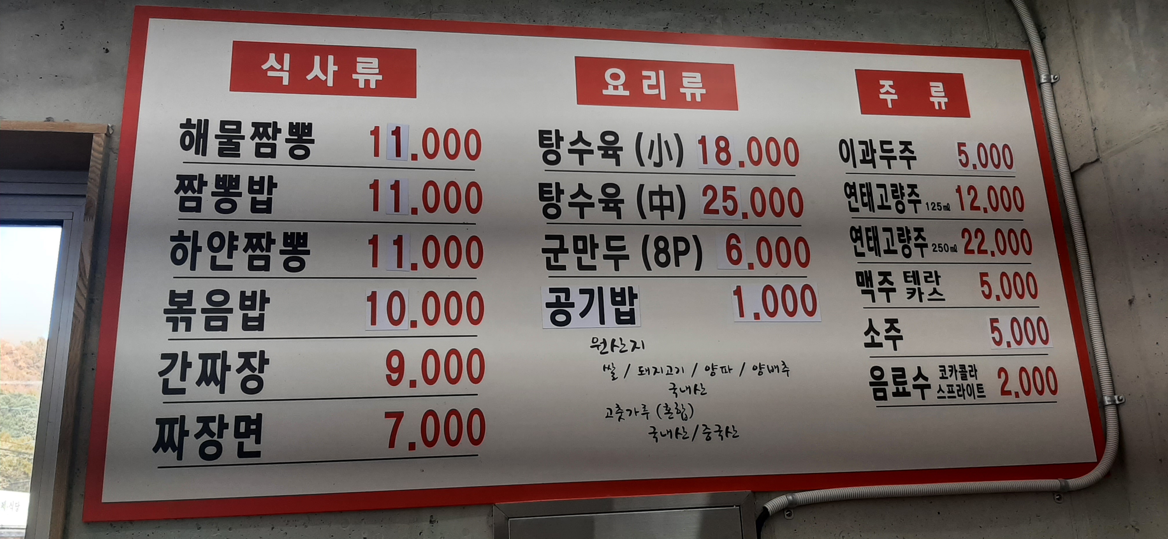 용두리 짬뽕 전문점은 기존의 가게를 헐고 새로 지어서 영업을 시작한 지 약 1년 정도 된다. 나는 용두리 짬뽕 전문점을 여러 번 방문하여 짬뽕, 탕수육, 자장면 등 시그니처 메뉴를 다 먹어보아서, 오늘은 내가 좋아하는 간짜장을 먹는다.