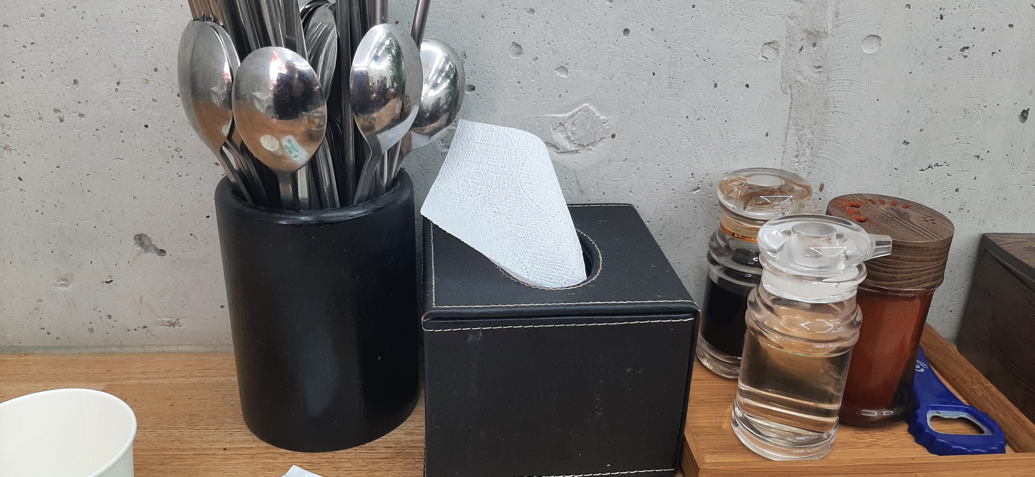 간짜장을 주문하고, 셀프코너에서 단무지, 양파, 춘장을 담아서 혼밥 테이블에 앉아서 음식이 나오기를 기다린다.
