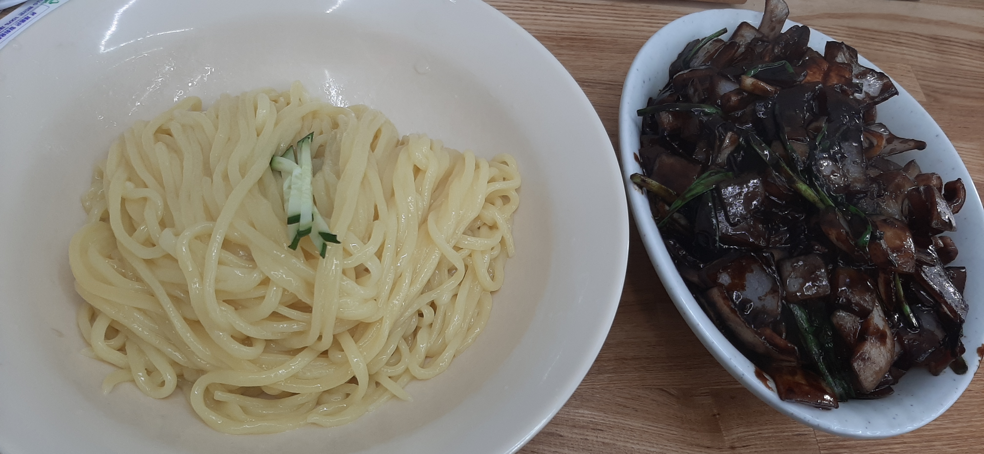 내가 좋아하는 간짜장이 나온다. 간짜장 소스를 아주 많이 주어서 기분이 좋다. 나는 간짜장 소스를 좋아해서, 간짜장을 먹다 보면 소스가 모자라서, 자장면 소스를 좀 더 달라고 부탁하여 먹는 경우도 가끔 있다. 갓 복은 간짜장 소스의 향이 고소하다. 면에 소스를 부어서 조금씩 면과 섞어서 먹는다. 맛있다.