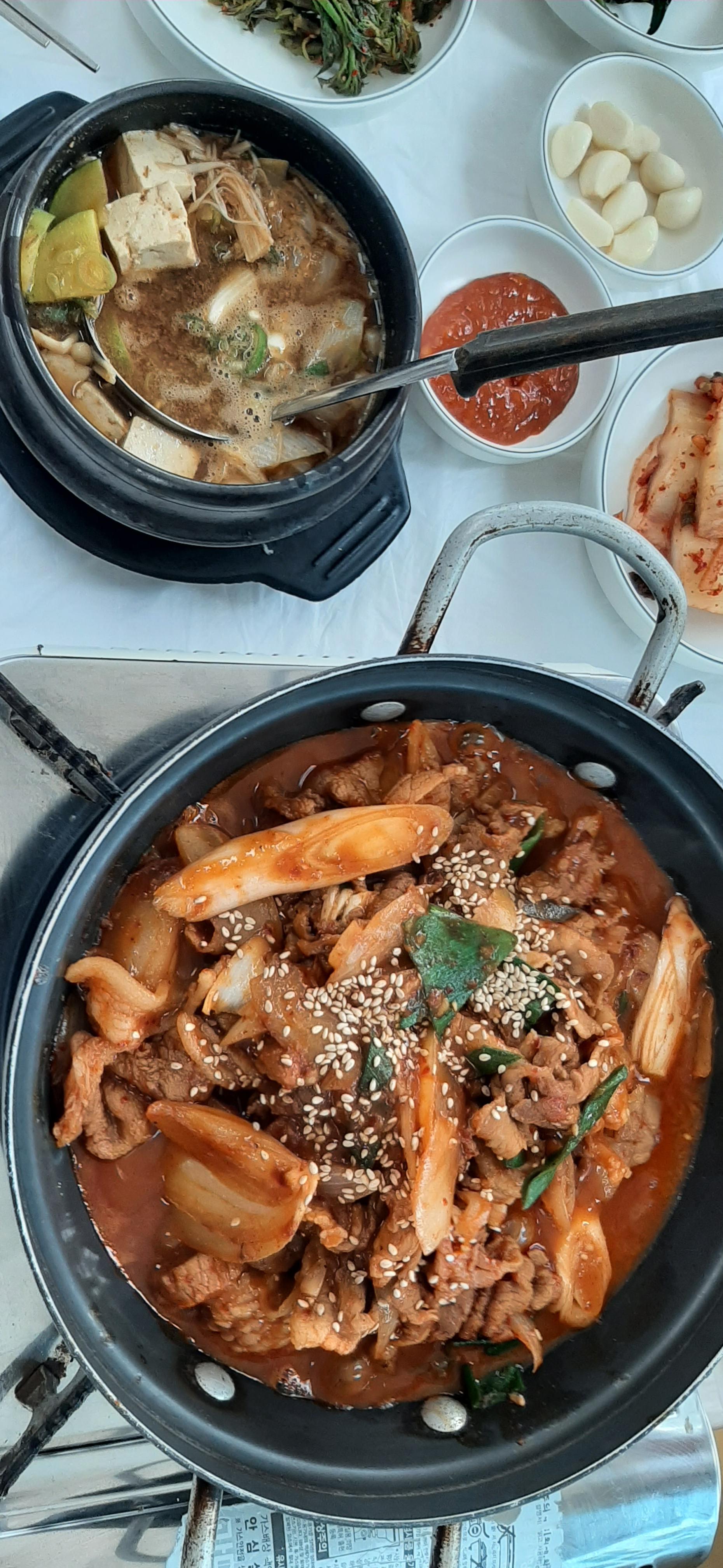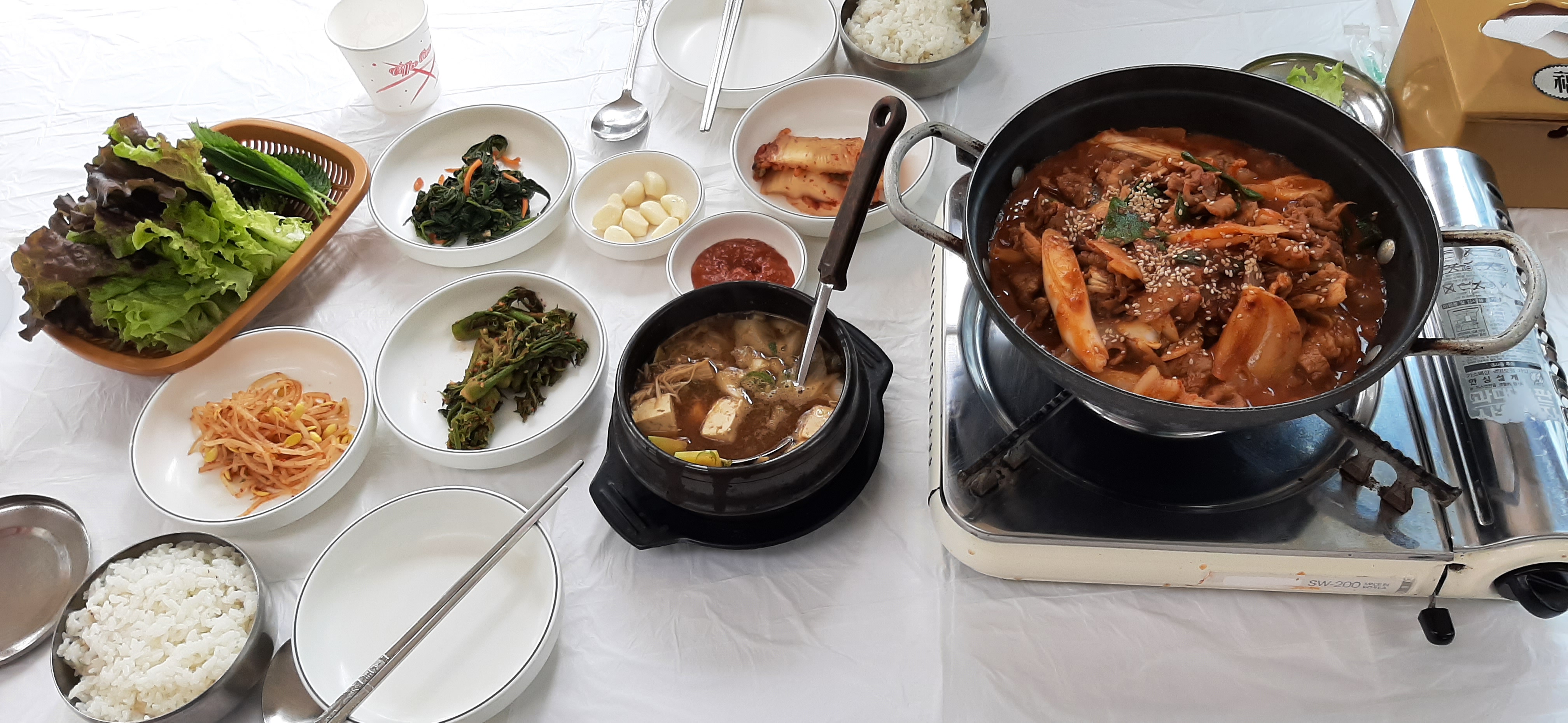 용두리에는 용두리 짬뽕 전문점이 맛있어서 멀리서도 많은 사람들이 찾아온다. 우리는 용두민속장터에 맛집 용두식당에 가서 제육볶음 2인분을 주문했다. 용두식당은 나이 드신 부부가 운영하시는데, 음식이 정갈하고 집밥을 먹는 것처럼 정성 가득하고 아주 맛있다.