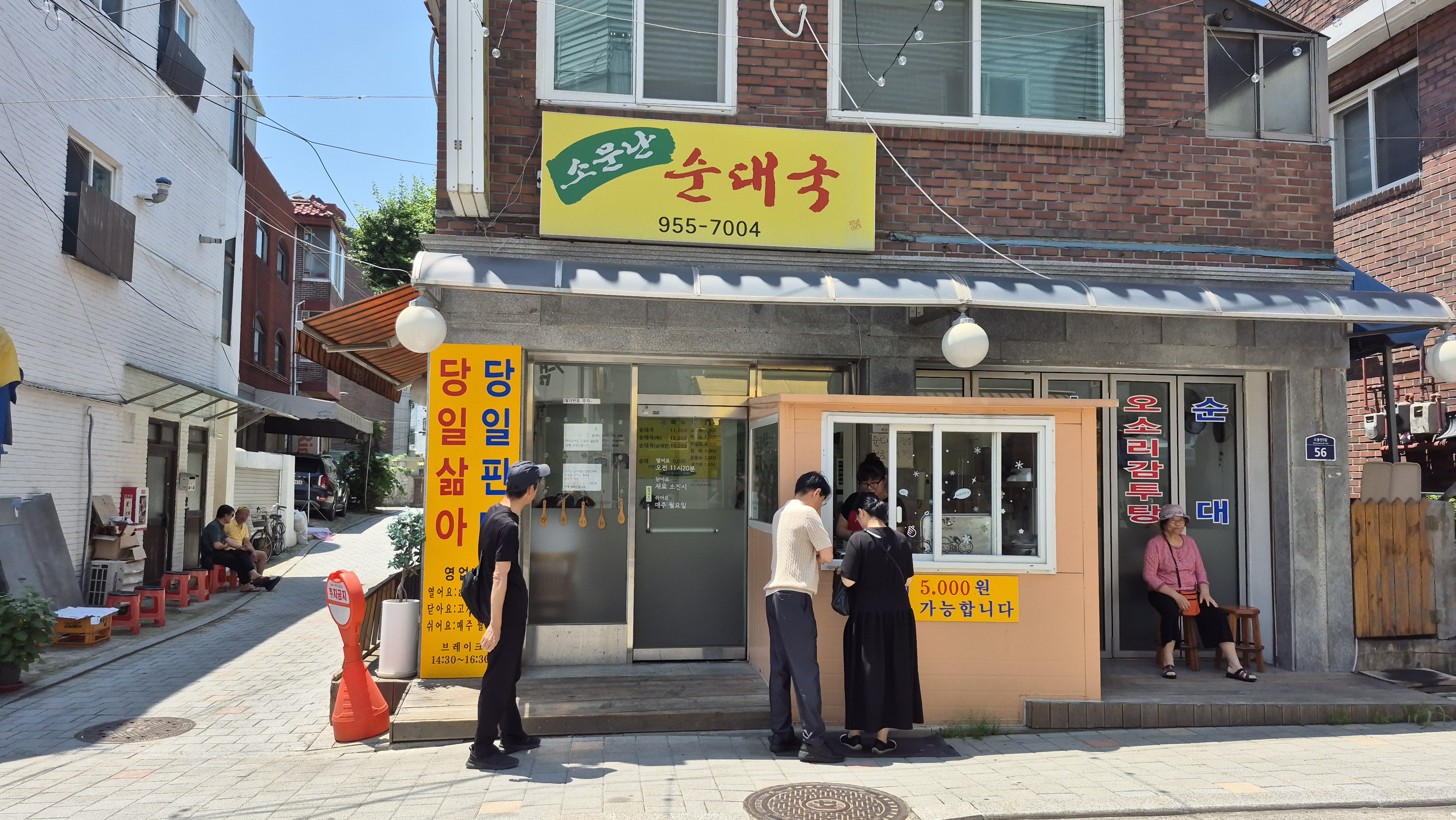 가게 입구 옆에 테이크아웃을 하는 곳을 만들어서 순대와 내장을 사는 사람들이 편리하게 이용할 수 있다.