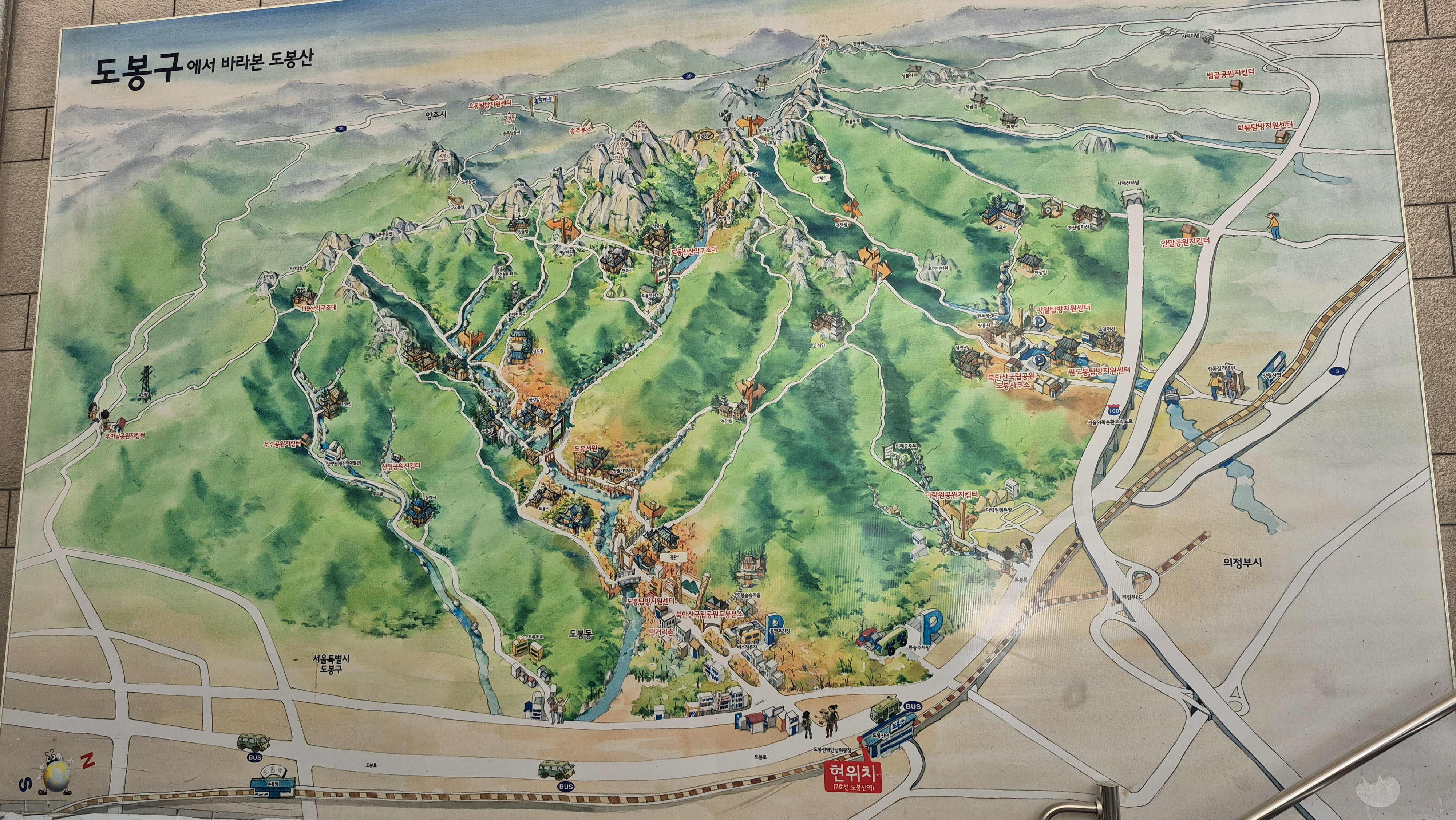 후배를 만나서 도봉산 방향으로 걸어간다. 길 양편에 식당들과 등산복을 파는 가게들을 지나서 계속 간다.