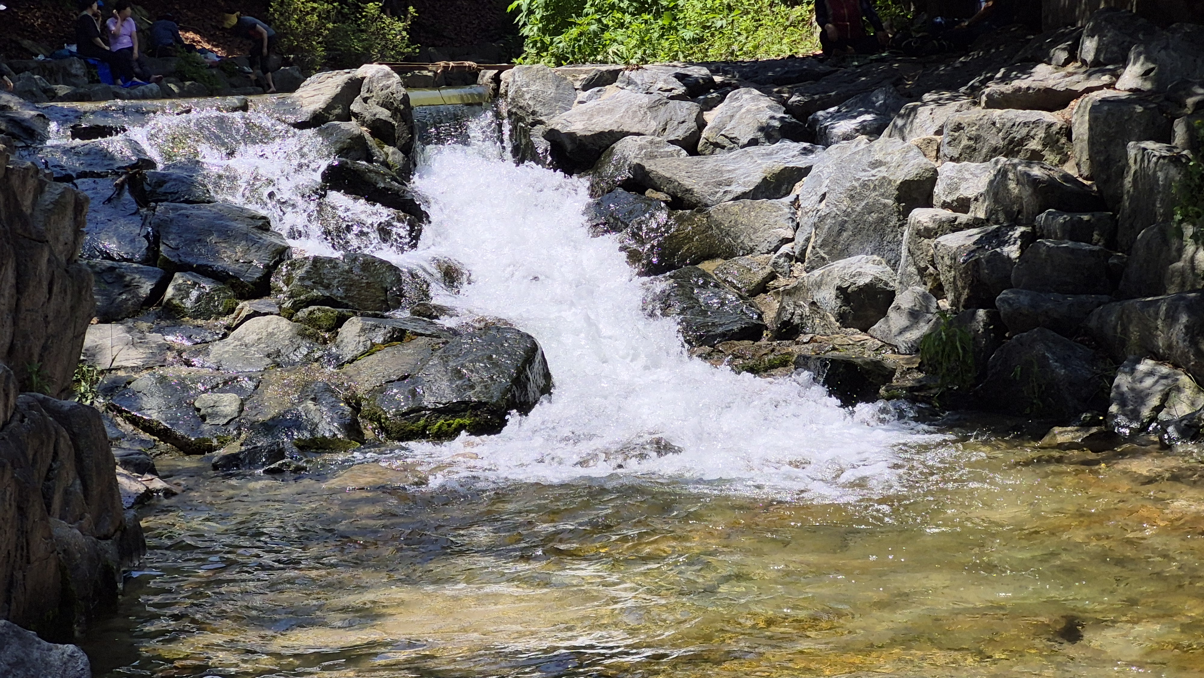 조금 걸어가니 맑고 깨끗한 계곡물이 흐르고 많은 사람들이 계곡 근처에 앉아서 뭔가를 먹으면서 행복해한다.
