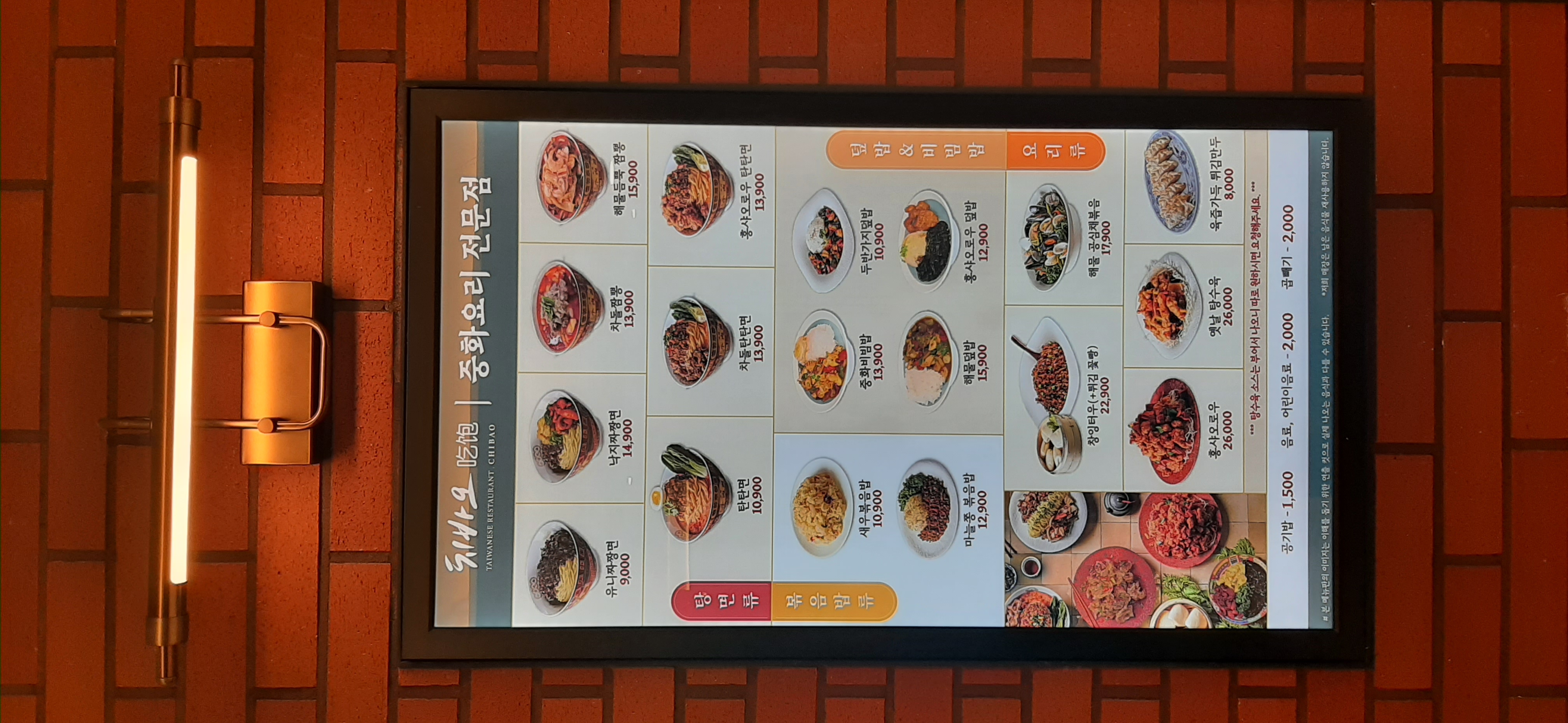 반찬은 단무지와 양배추 절임을 주고, 주문은 테이블에 설치된 키오스크로 한다.