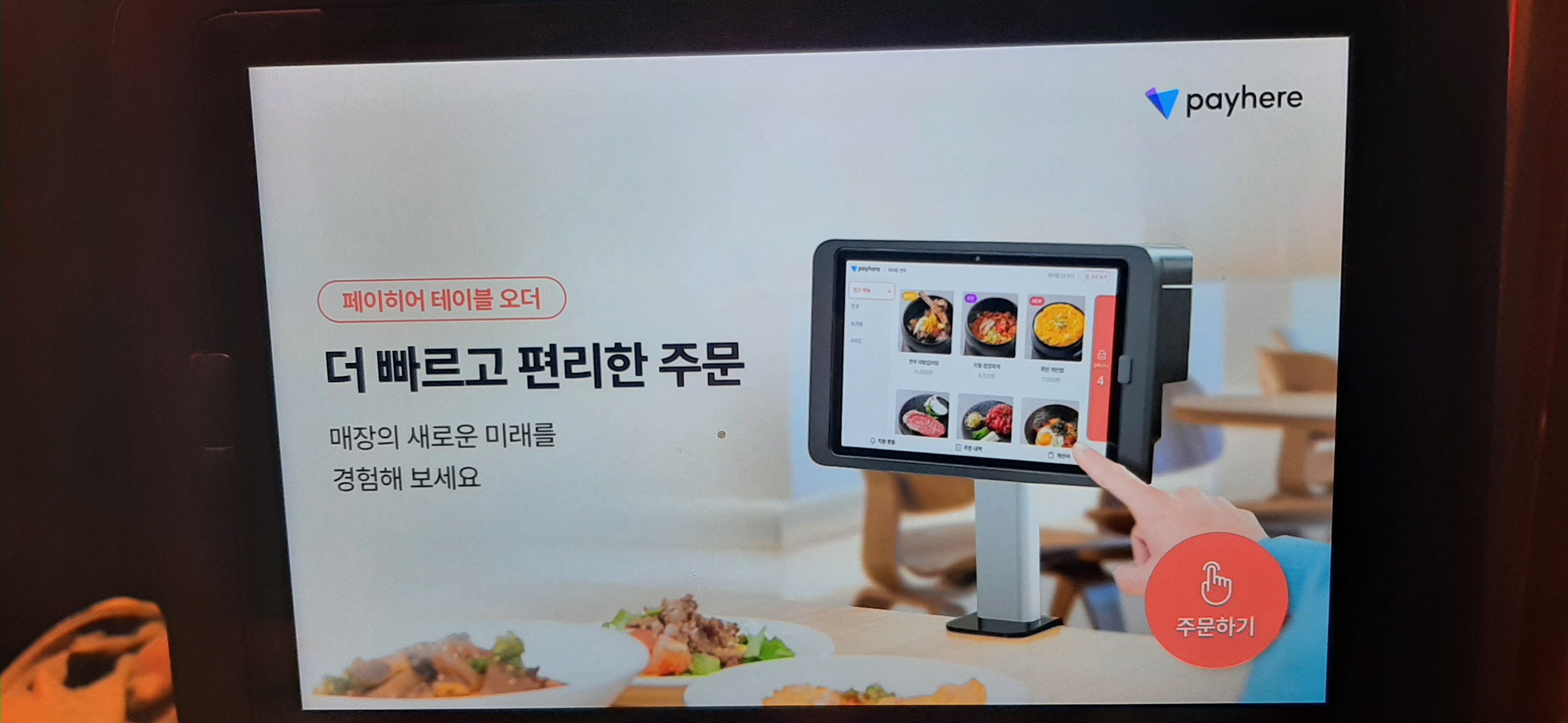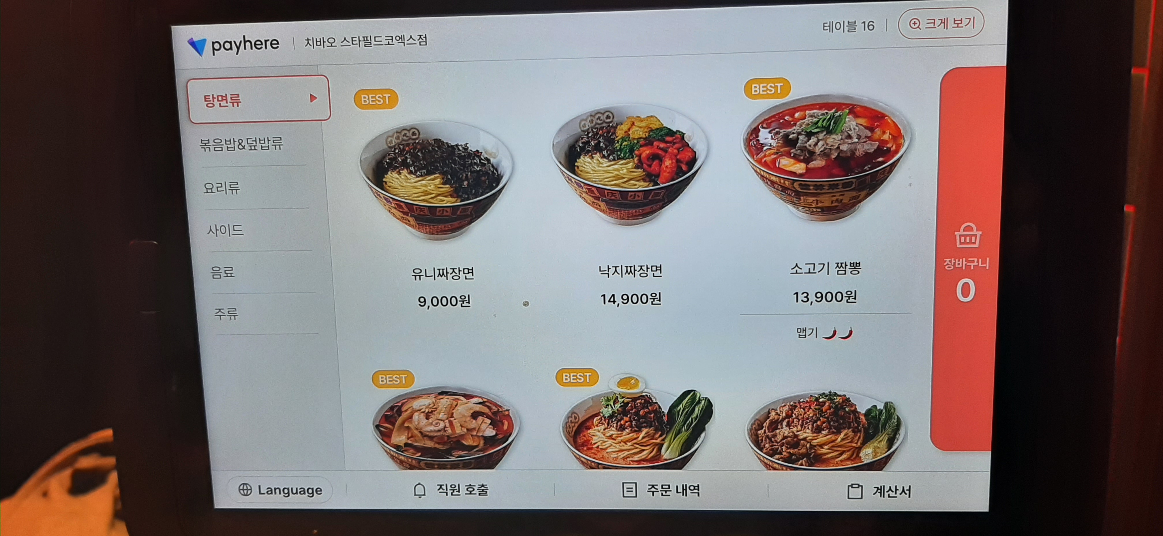 반찬은 단무지와 양배추 절임을 주고, 주문은 테이블에 설치된 키오스크로 한다.