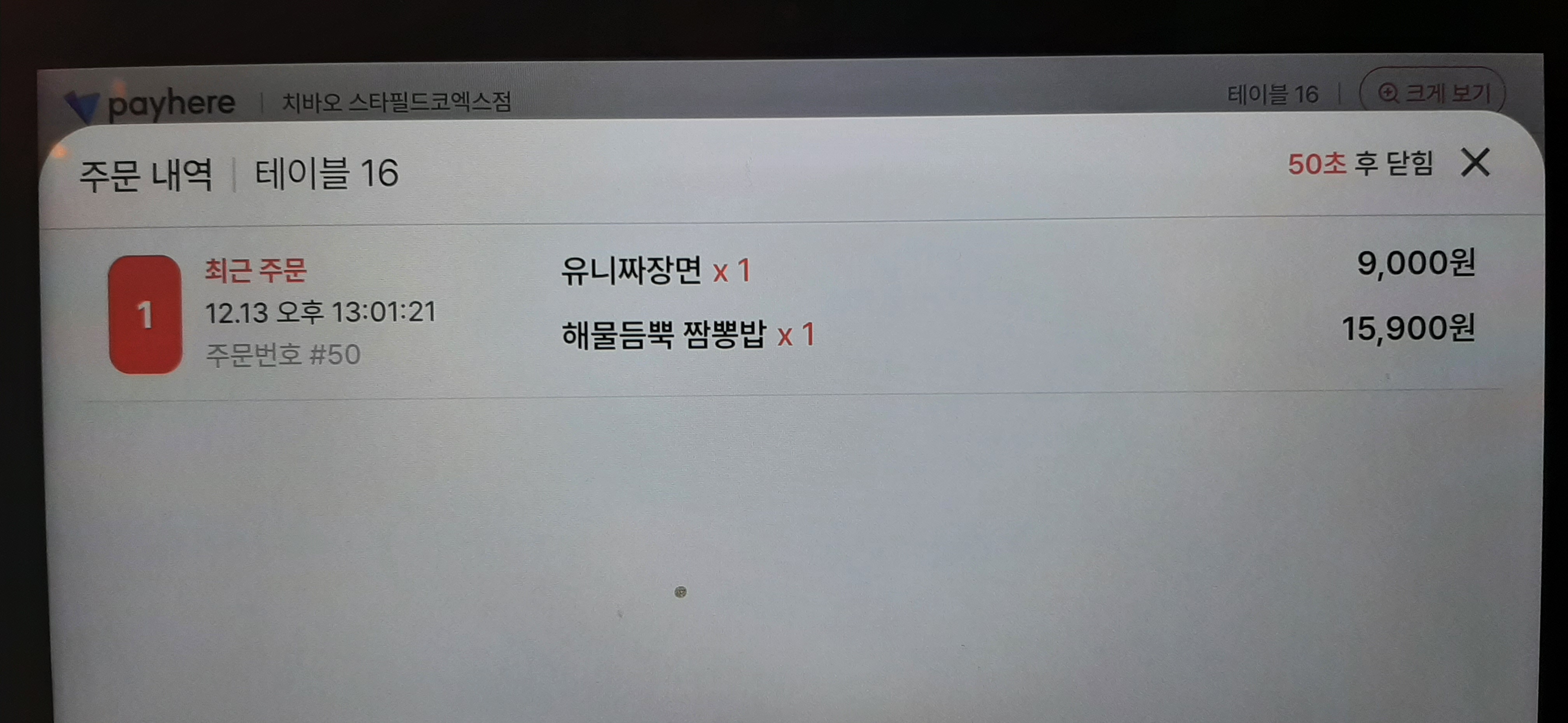 점심시간이라 근처 사무실에서 근무하는 셀러리맨들이 많이 나와서, 가게 입구에 설치된 단말기(페이히어)에 내 전화번호를 입력하니 대기번호 3이 나와서, 근처에 있는 의자에 앉아서 내 순서가 되기를 기다린다. 10여분 후에 내 순서가 돼서 가게로 들어가서, 맨 구석에 아늑한 자리에 앉았다.