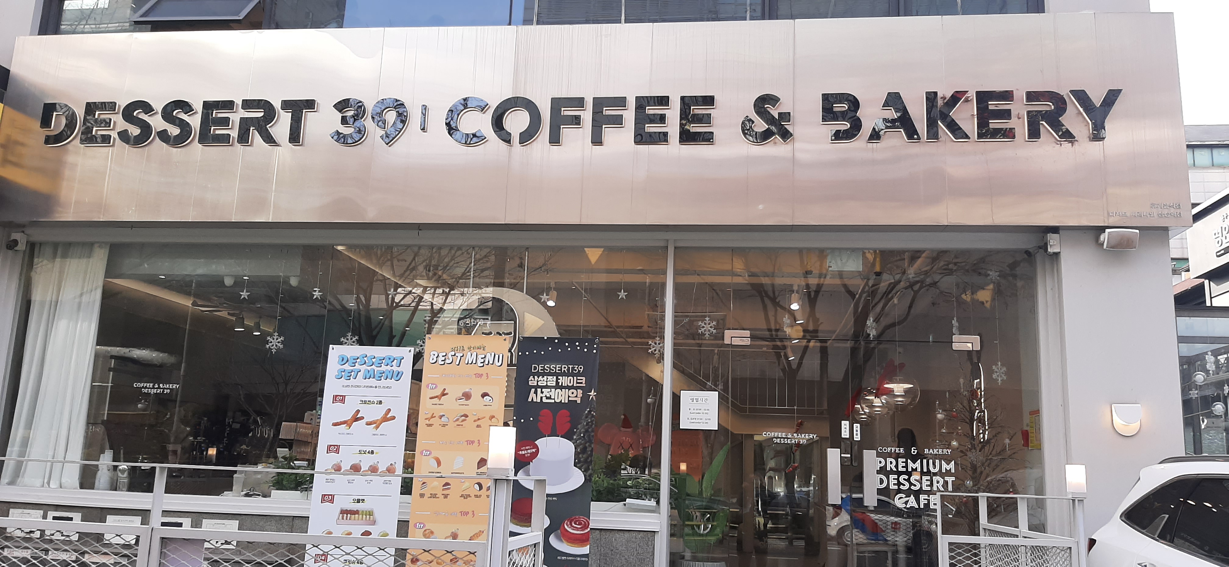 딸이 손주에게 딸기주스를 사주려고, 근처에 있는 디저트 39 커피 앤 베이커리에 가서 키오스크로 주문을 하고, 카드는 내 것을 넣는다.