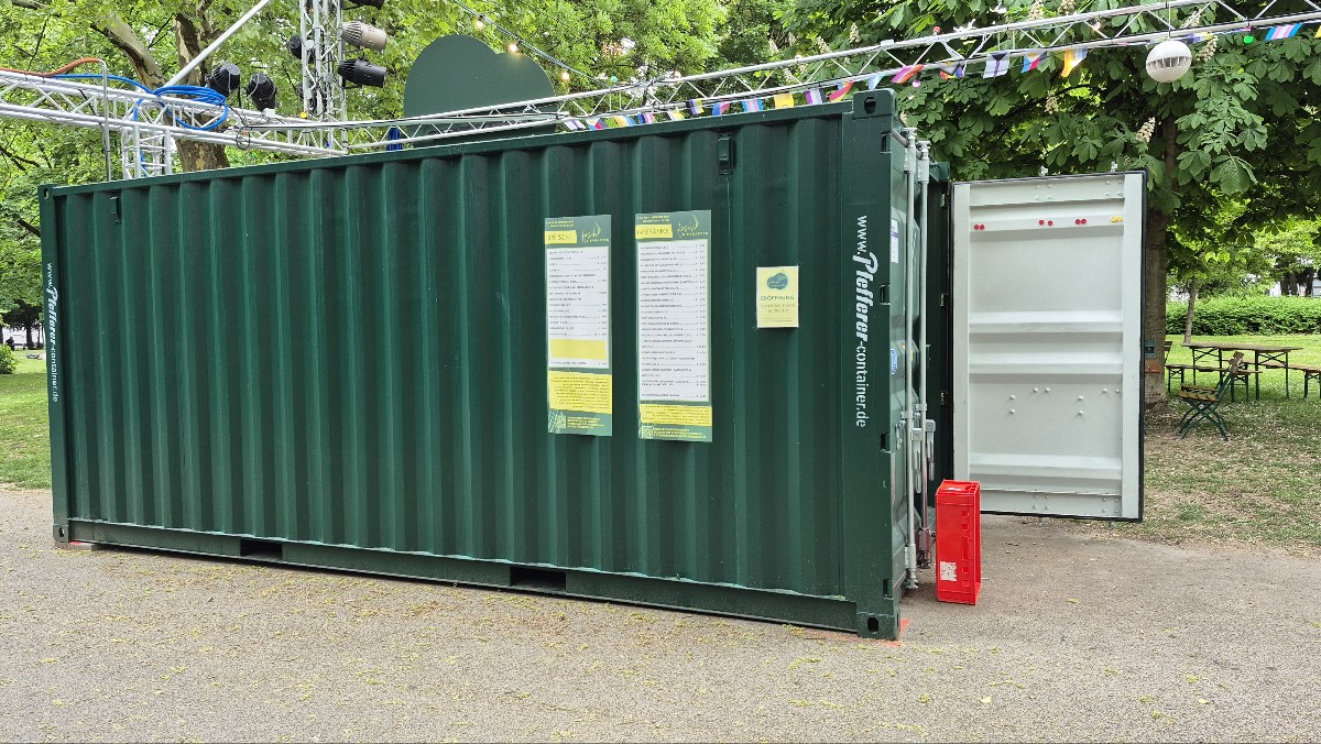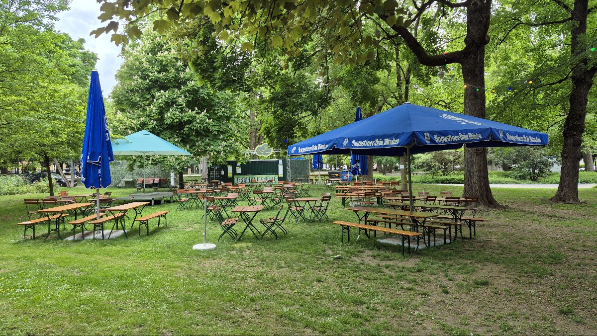 가는 길에 마로니에 나무가 많은 곳이 있어서 가보니, 비어 가르텐이 있다. 비어 가르텐이라는 호칭을 하려면 마로니에 나무가 5그루 이상 있어야 한다고 하박이 나에게 알려주었다. 컨테이너로 된 식당이라는 생각이 든다. 마로니에 꽃이 활짝 핀 마로니에 나무 아래에 많은 테이블과 의자가 있고 파라솔도 설치되어 있다.
