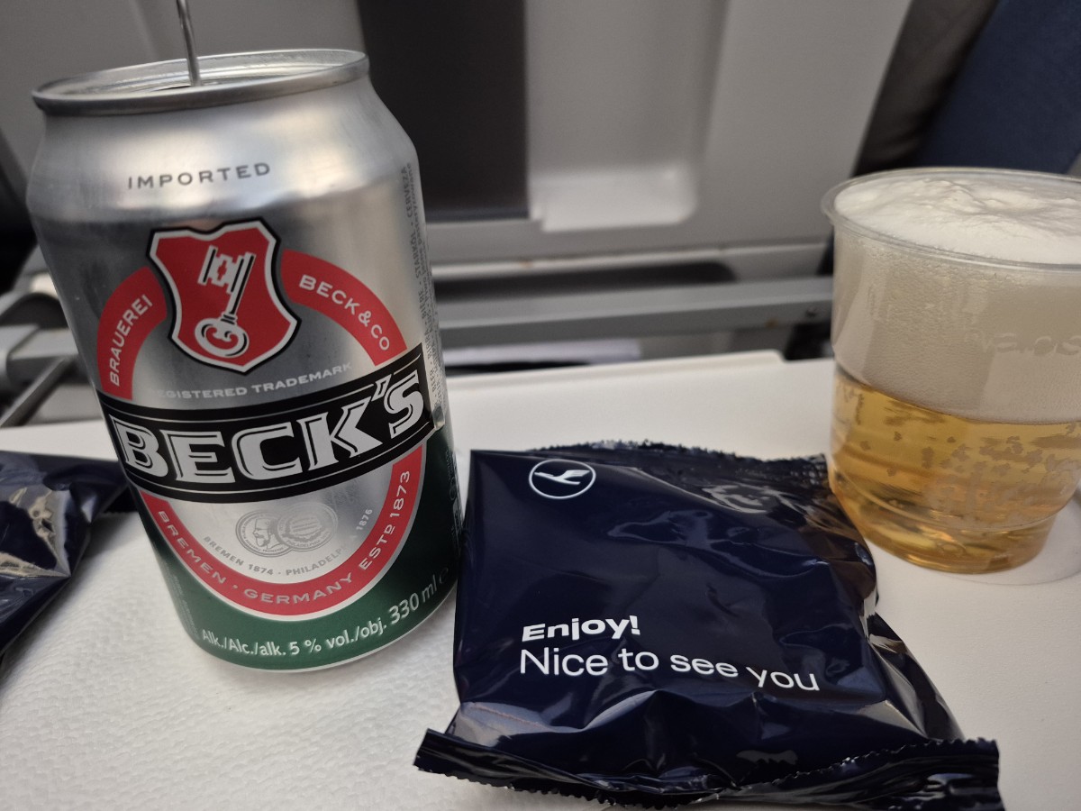 배고픈데 내 차례는 언제 오려나. 저 멀리서 서비스를 한다. 밥을 준다고 생각했는데 음료수를 가져온다. 나는 독일 맥주를 달라고 한다. 벡스라는 독일 맥주와 과자봉지를 준다. 시원한 벡스 맥주를 한 잔 마시니 기분이 좋다.