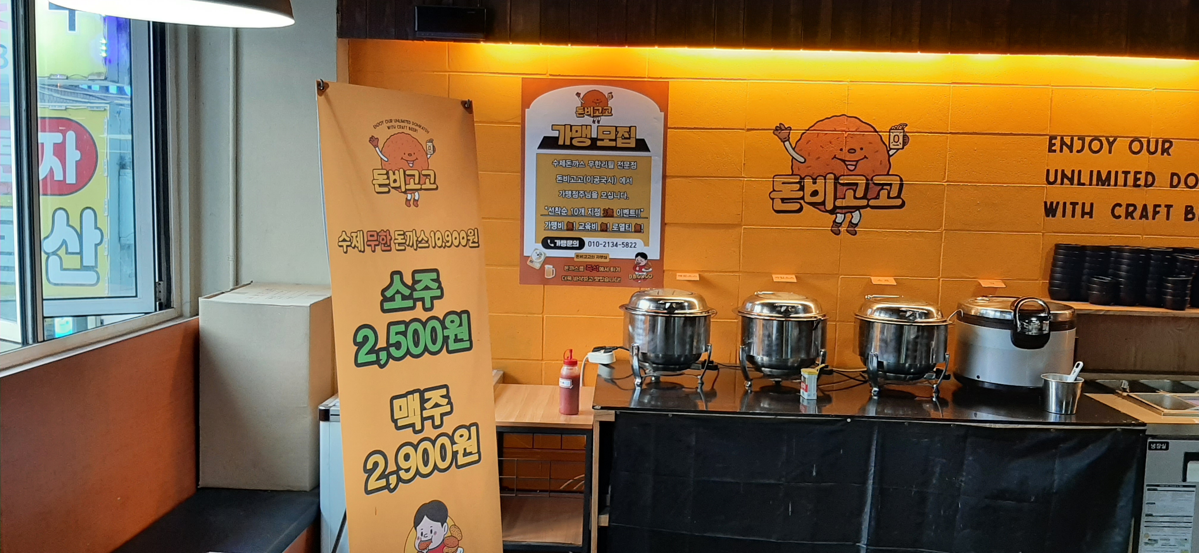 돈가스 무한리필 1인 가격이 10,900원에서 8,800원으로 할인을 하고, 더 좋은 것은 소주가 2,500원 맥주는 2,900원이다.
