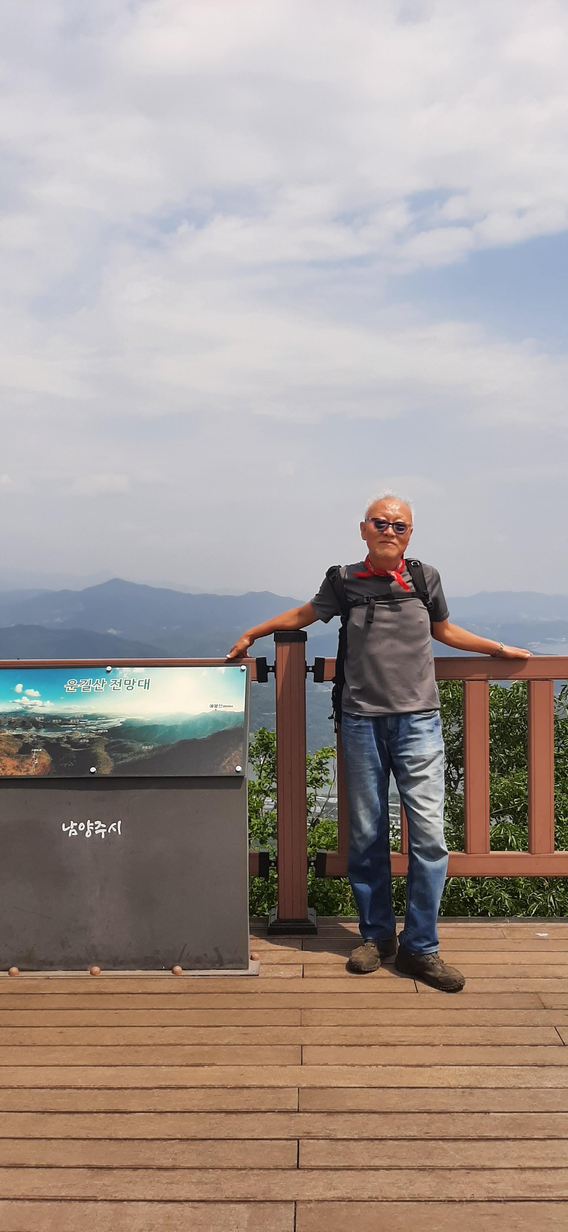 정상에 올라서니 적당히 큰 바위에 운길산 표지석이 있고, 나무로 정상에서 쉴 곳을 만들어 두었다. 정상에서 바라보는 북한강의 경치가 너무 아름답다. 정상에 올라온 사람에게 부탁을 하여 증거사진을 여러장 찍었다. 의자에 앉아서 집에서 싸 온 도시락을 먹으면서 주위의 경치를 감상한다. 이제 수종사로 하산하면 오늘의 일정은 끝이다. 운동을 해서 체력을 길러야겠다고 다짐한다.
