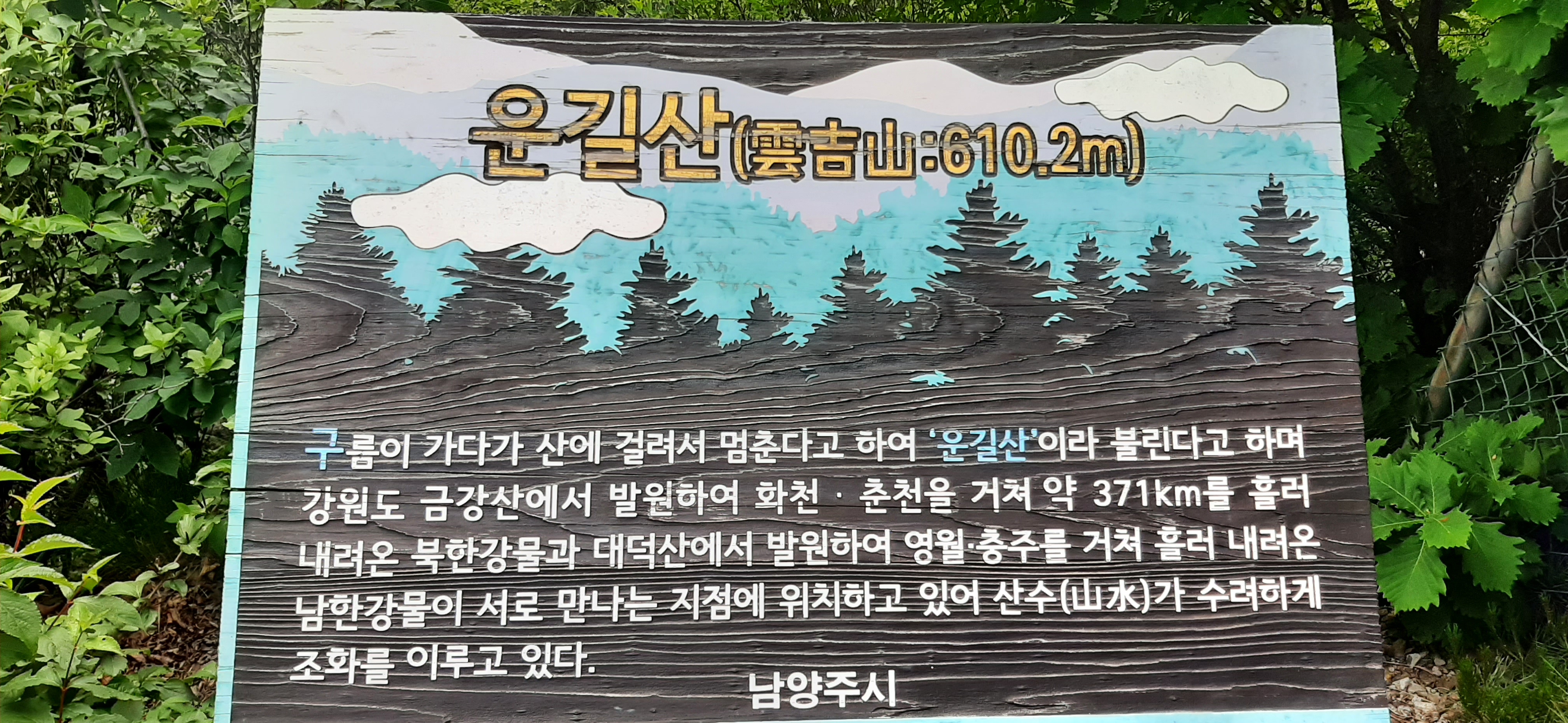 운길산은 남양주시 조안면에 위치한 높이 610.2미터인 산이다. 북한강과 남한강이 만나는 두물머리(양수리) 북서쪽 지점에 솟아 있다. 1890년(고종 27)에 지은 《수종사중수기》에는 운길로 나오고, 그보다 오래된 《동국여지승람》에는 조곡산이라고 적혀 있다.