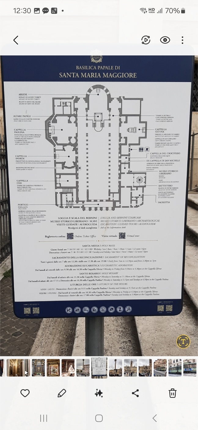 산타 마리아 마조레 대성당을 지은 유래는, 352년 한여름 밤에 교황 리베리오는 성모 마리아가 꿈에 나타나 "눈이 내리는 언덕 위에 성당을 지으라"는 계시를 받았다. 며칠 후 교황은 에스퀼리노 언덕에 하얗게 눈이 내린 것을 발견하고, 그 자리에 성당을 건축한다. 13세기 초의 기독교 양식부터 로마네스크 양식의 종루, 바로크 양식의 실내 장식 등 다양한 건축양식으로 지어졌다. 성당 입구에 있는 경비원 2명이 인천국제공항 검색대보다 까다롭게 검색을 한다. 이태리의 많은 관광지에는 기관총을 든 경비원들이 있다. 나는 산타 마리아 마조레 대성당 앞에 있는 마트에서 매일 식재료를 사면서 성당을 보았다.출처: https://chunsungwook.tistory.com/entry/이태리-여행-기록-로마의-숙소-바티칸-박물관 [여행 및 일상:티스토리]