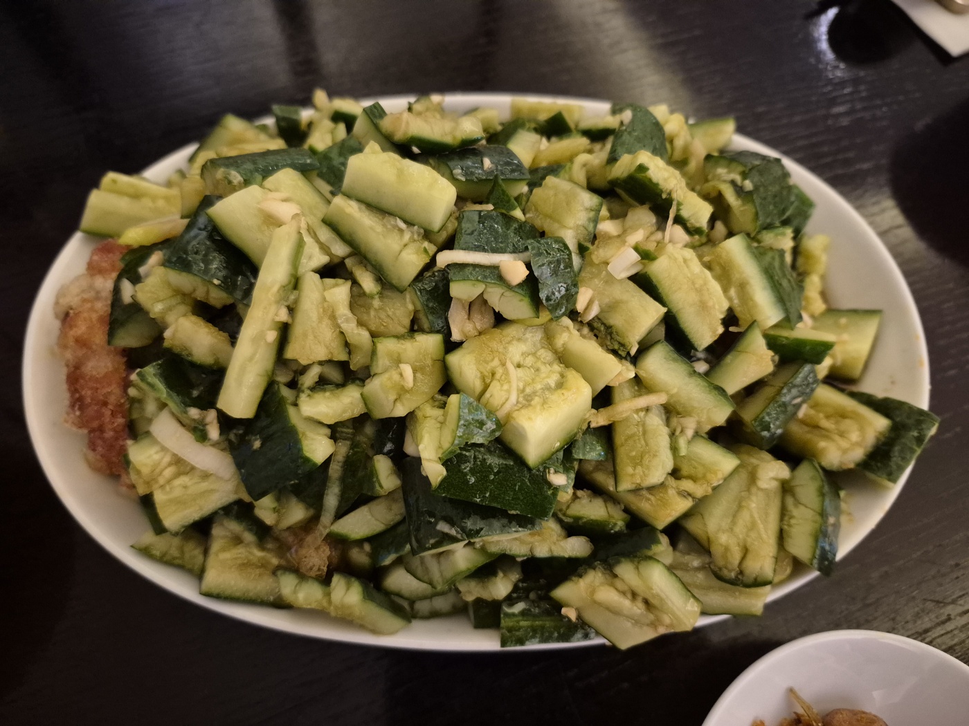 애사비 오이 탕탕 유린기에는 오이가 4개 들어갔다고 명시되어 있다. 먹으면서 보니 정말로 오이가 많이 들어 있고, 유린기는 바닥에 깔려 있다. 오이와 유린기가 잘 조화를 이루어서 맛있다. 취향에 따라서 애사비를 첨가하여 먹는다.