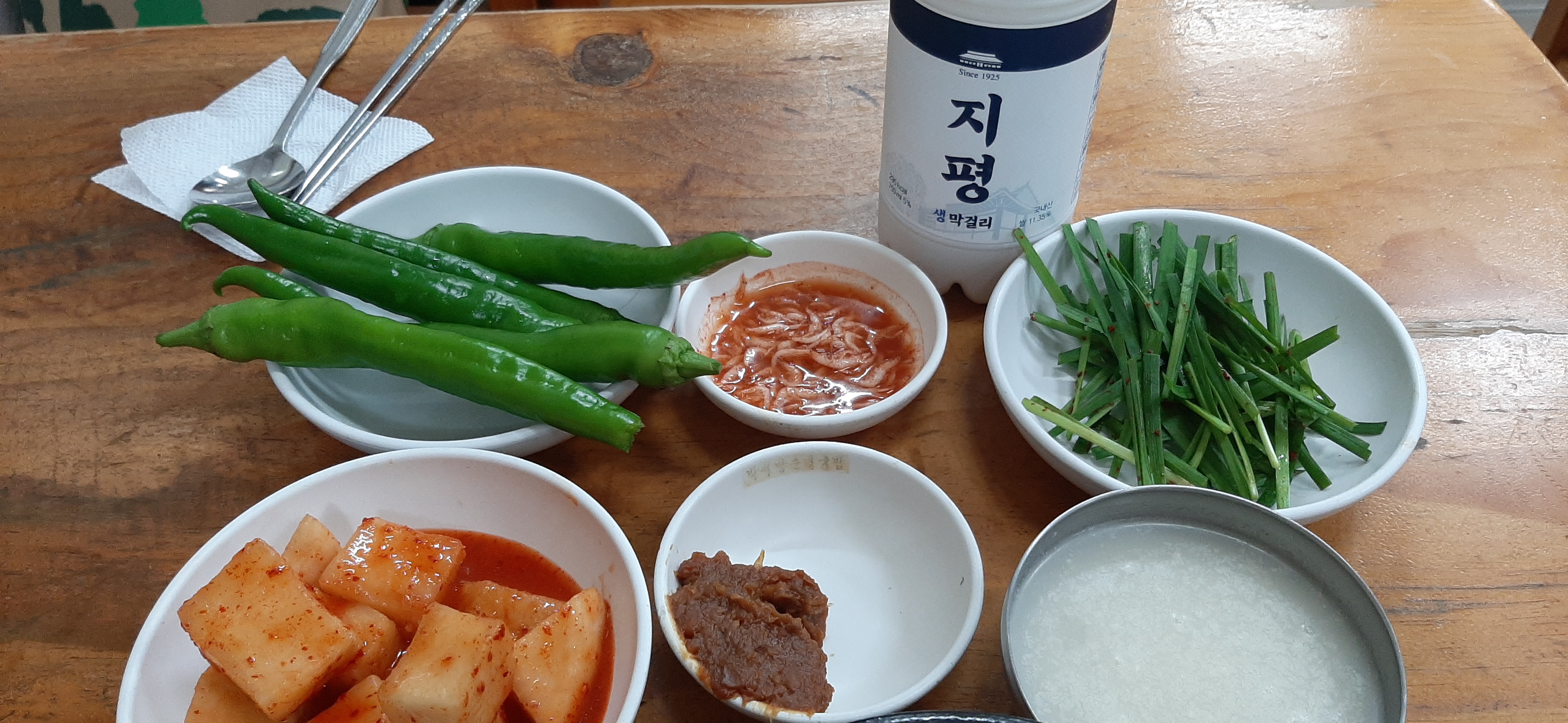 기본 반찬과 지평막걸리