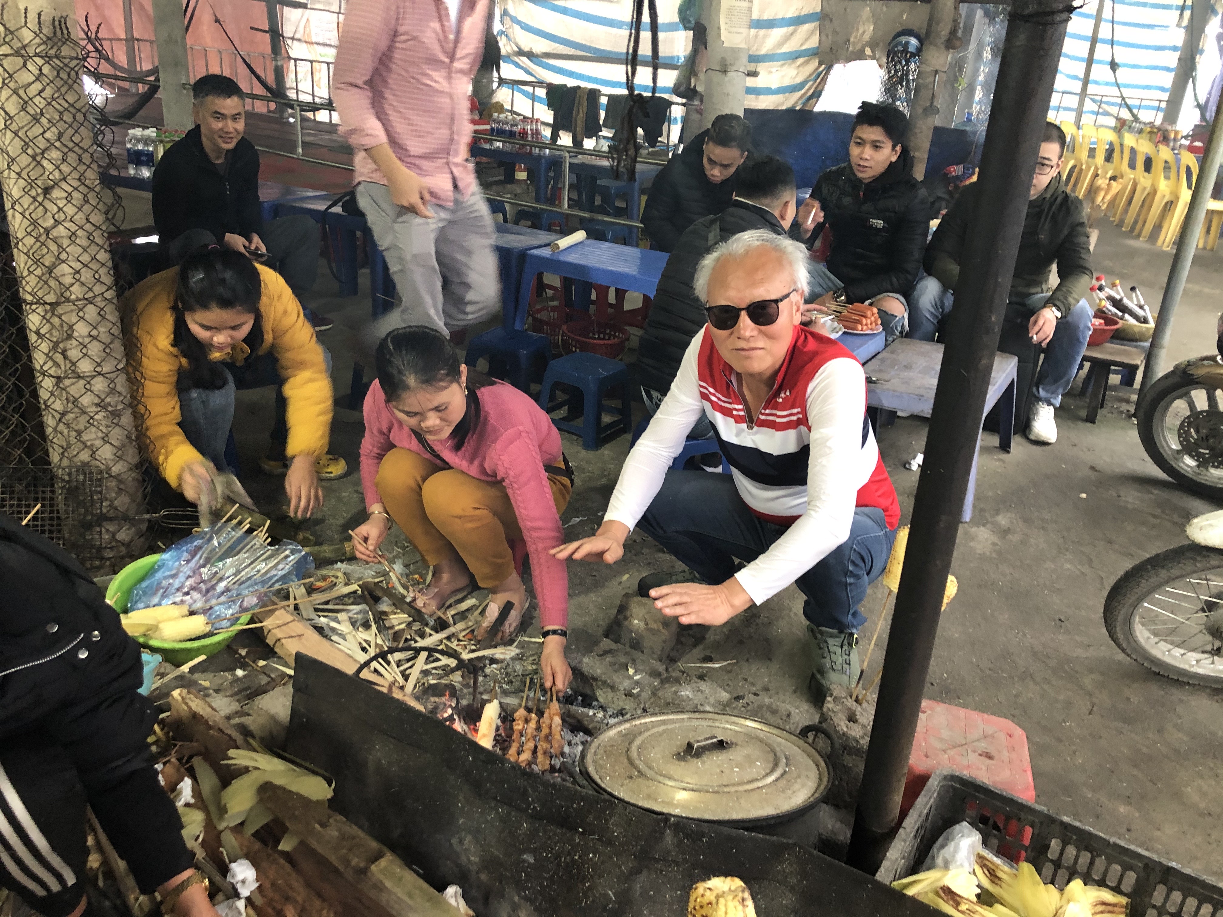 베트남 사장이 가래떡 비슷한 꼬치를 먹으면서, 맛있다고 나에게 권하여, 한입 먹어보니 밥알이 씹히면서 맛있다. 나도 한 꼬치 집어서 먹는데, 탱글탱글한 밥알이 씹히면서 불향이 나는 게 별미이다. 대나무에 밥을 넣어서 숯불에 구운 것이며, 베트남 소수민족의 껌람이라는 음식이라고, 베트남 사장이 나에게 알려준다. 산속에 사는 베트남 소수민족들은 순수하고, 티 없이 맑다. 숯불을 쬐면서 껌람을 먹으니 안개 자욱한 험한 산길을 오느라, 쪼그라들었던 내 간이 살아나는 느낌이다. 휴!