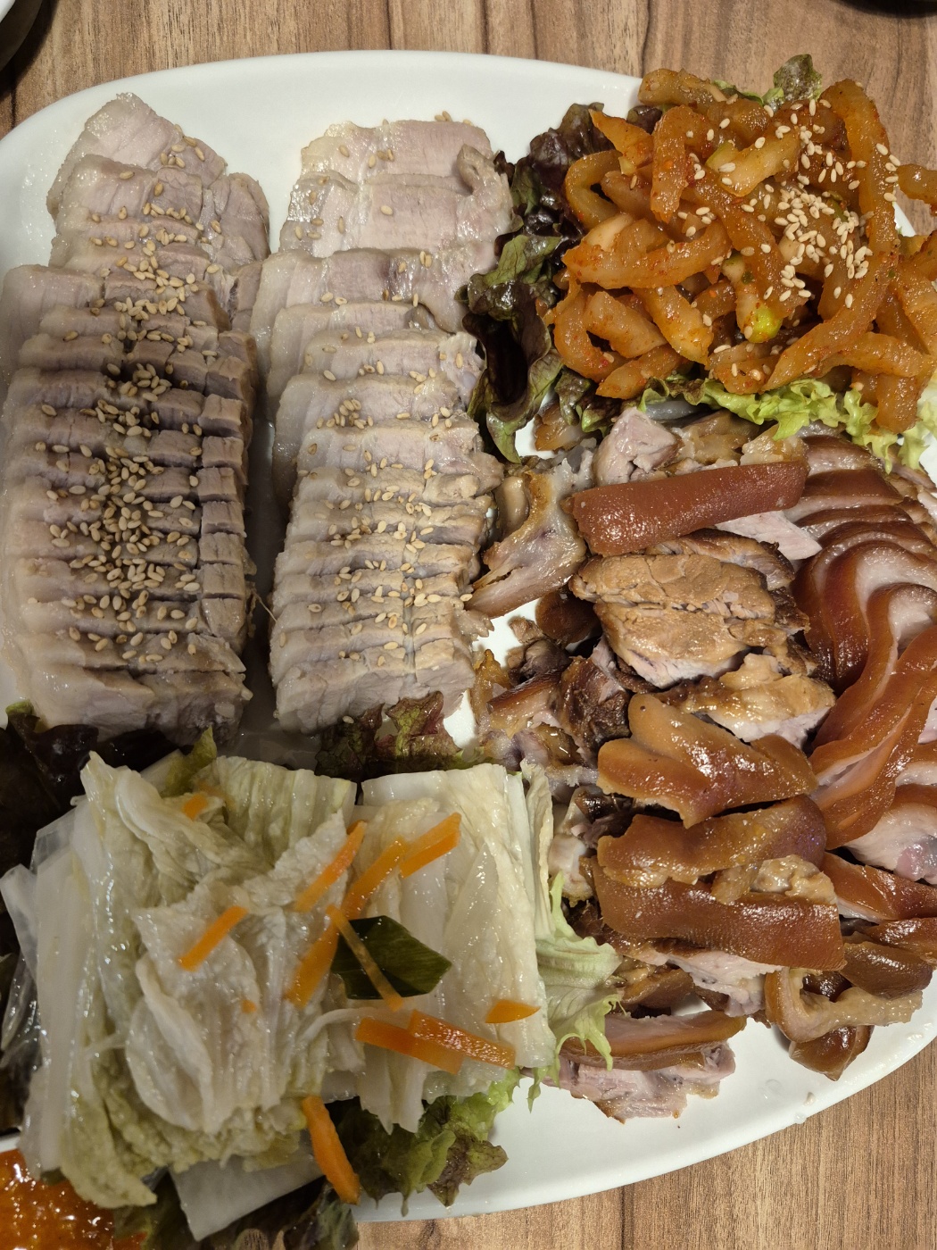 드디어 메인 메뉴인 족발 보쌈이 나오니 우리는 아무 말 없이 먹는다. 나는 소성 막걸리를 천천히 마시면서 족발을 먹는다.