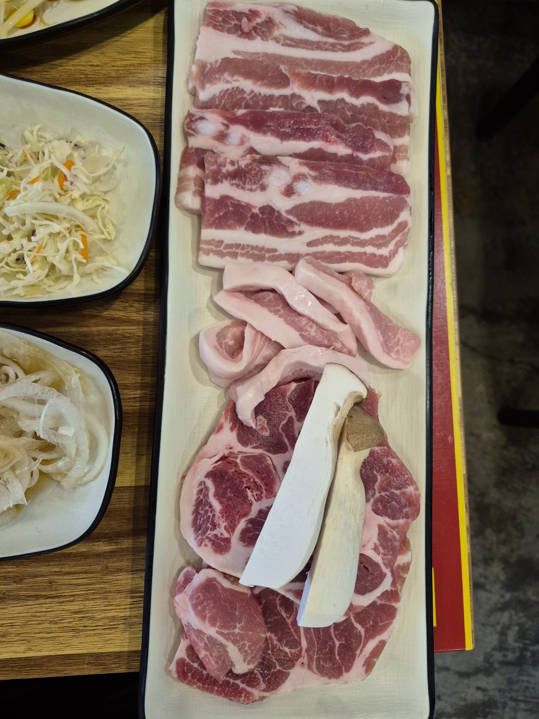 불광역 만석고기집에서 큰 돼지 프리미엄 세트를 먹는다.