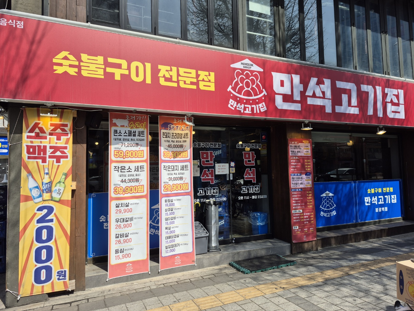 만석고기집은 불광역에서 소문난 고기 맛집이고, 맥주와 소주를 2,000원에 판매를 하니 더 좋다.