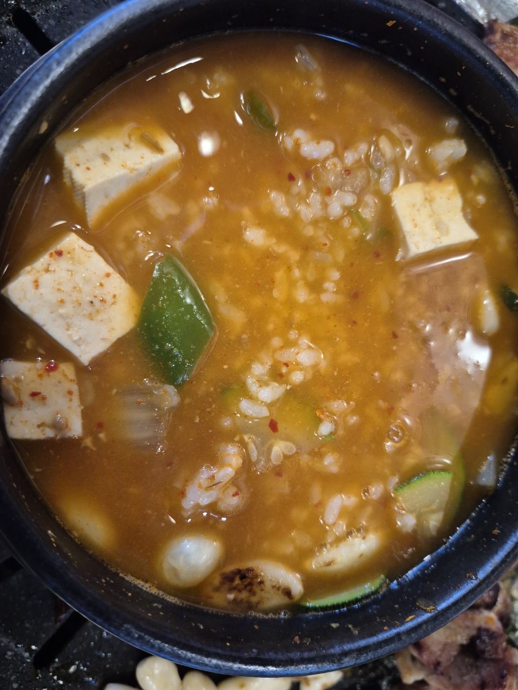 된장찌개와 공깃밥을 주문하여 공깃밥을 된장찌개에 넣고 푹 끓이면 맛있는 술안주가 된다.