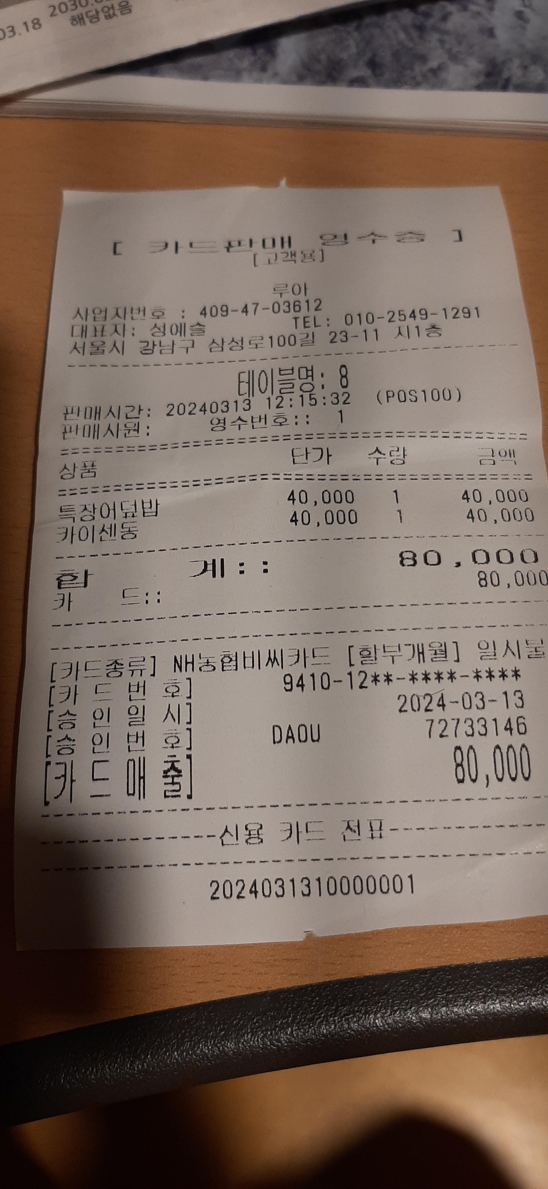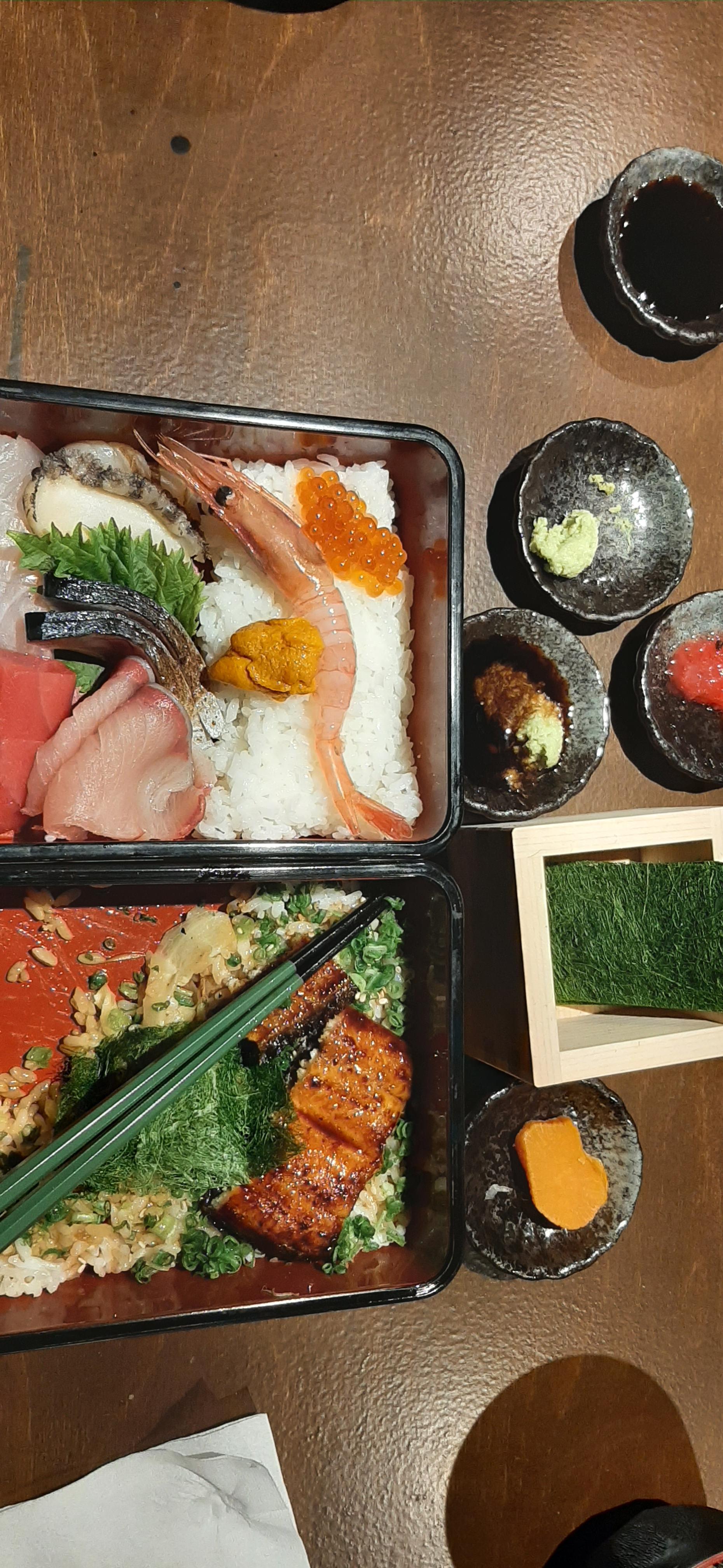 메뉴를 살펴보고, 점심 메뉴 중 제일 비싼 특장어덮밥과 카이센동을 주문하면서, 두 사람이 두 가지 음식을 맛볼 수 있게, 반반으로 만들어달라고 멋진 셰프에게 부탁을 하니 흔쾌히 허락을 한다. 이자카야 루아의 멋쟁이 셰프는 아주 유명한 5성급 특급호텔 셰프를 했다고 한다.