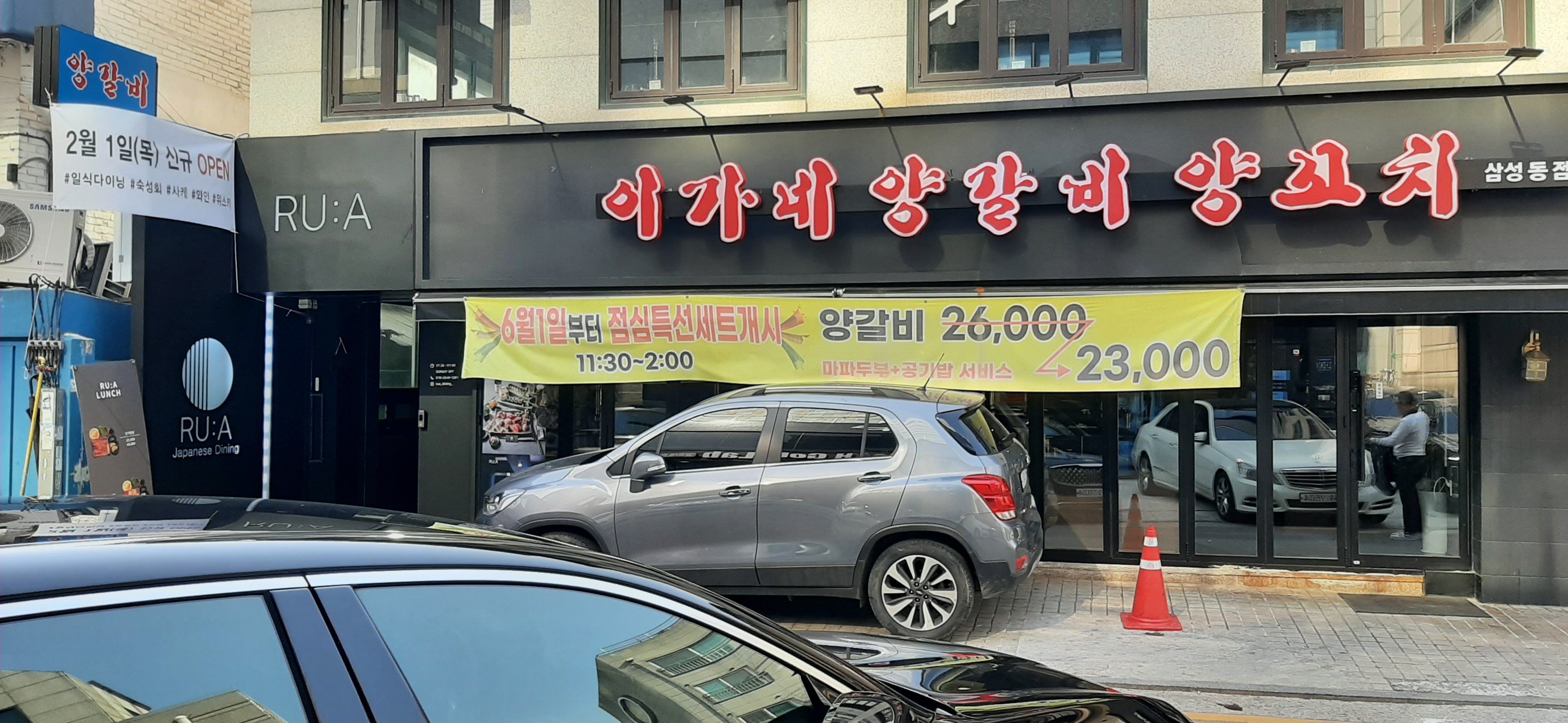 루아는 강남구 삼성동 코엑스 뒷골목에 있지만, 쉽게 찾았다. 루아는 삼성동에서 아주 유명한 맛집인 이가네양갈비양꼬치 건물 지하에 있다. 지하로 내려가는 계단도 깔끔하고 이쁘게 장식되어 있다.