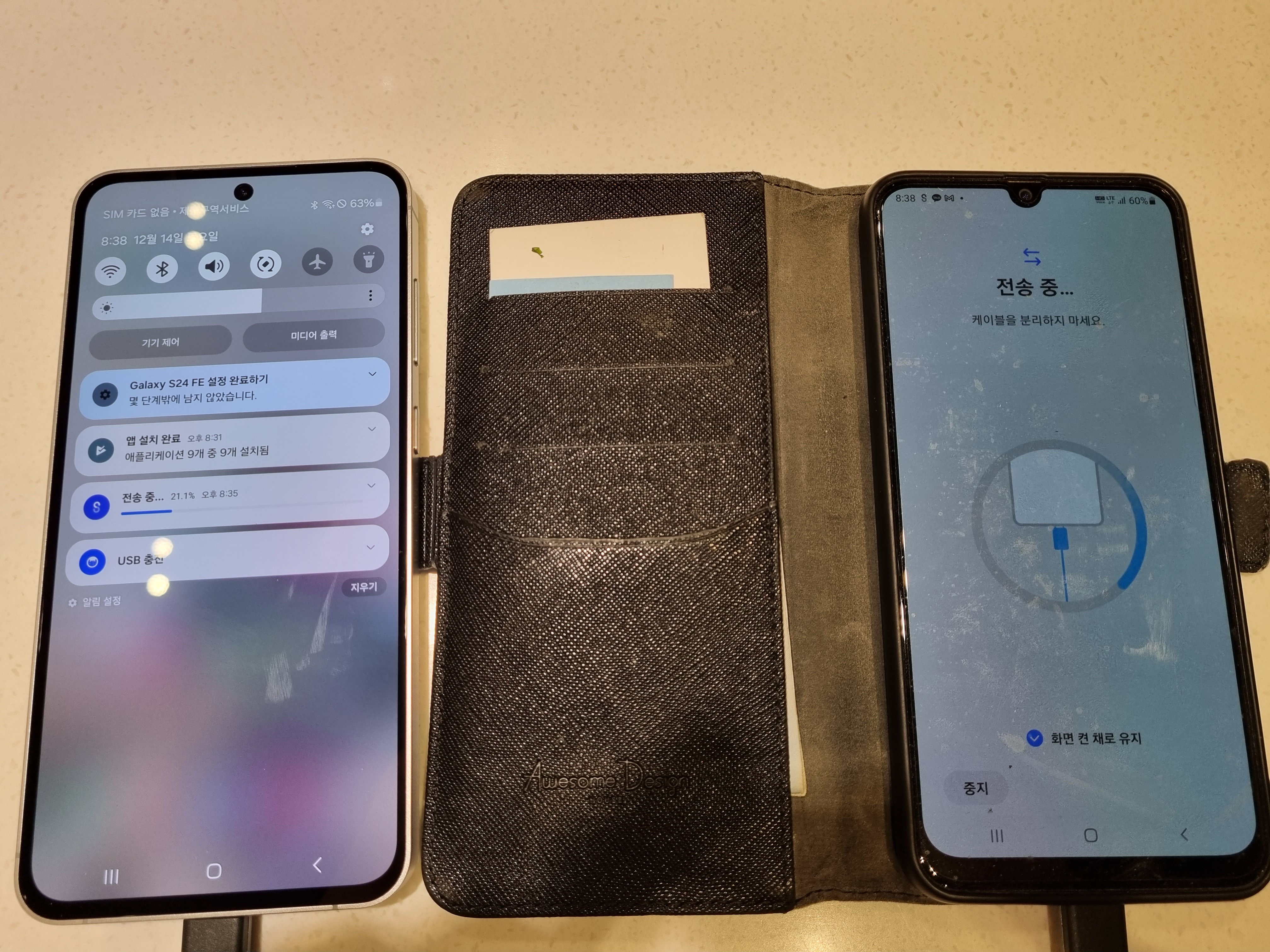 기존의 네 폰과 갤럭시 S24 FE를 케이블로 연결하고, 동기화를 진행하니, 내가 사용하던 폰의 모든 정보가 갤럭시 S24 FE로 전송된다. 카카오 톡의 대화 내용도 다 옮겨준다. 기분 좋다.