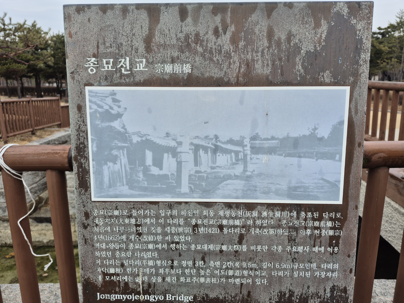 종묘로 들어가는 입구에 흐르는 하천인 회동 재생동천에 세워진 다리를 종묘전교라 한다.