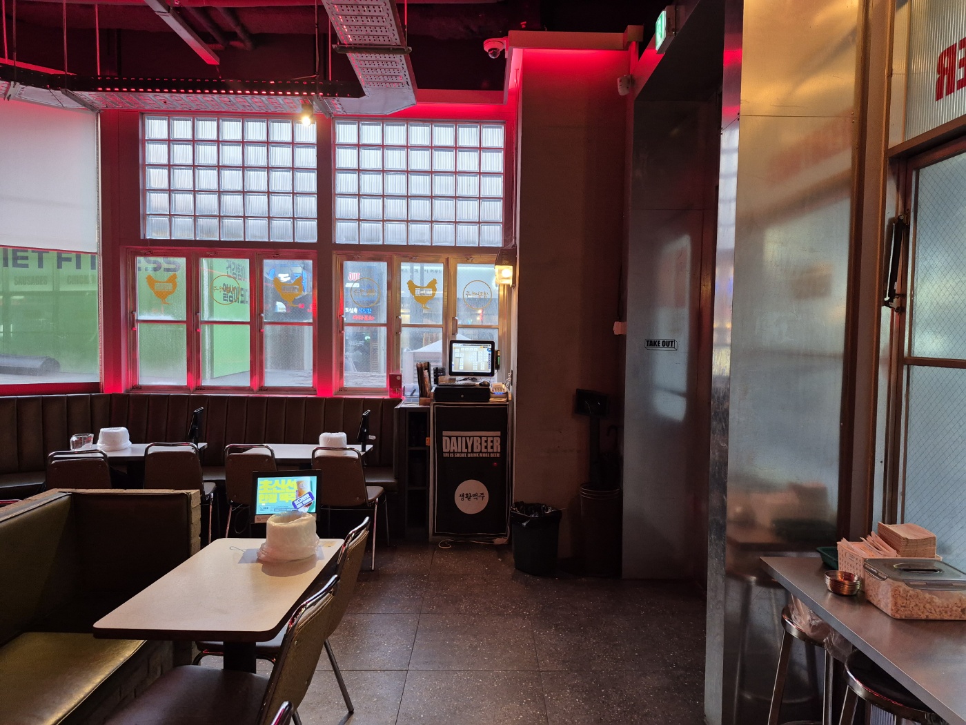 가게는 아주 넓고, 손님들도 많이 있다. 실내는 좀 어두웠지만 분위기는 좋고, 신나는 음악이 크게 들린다.