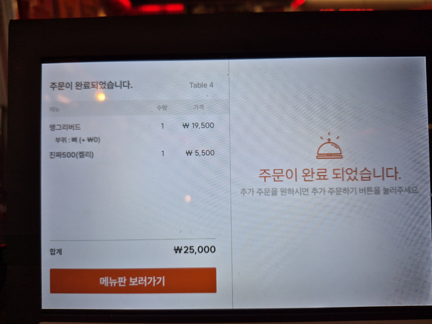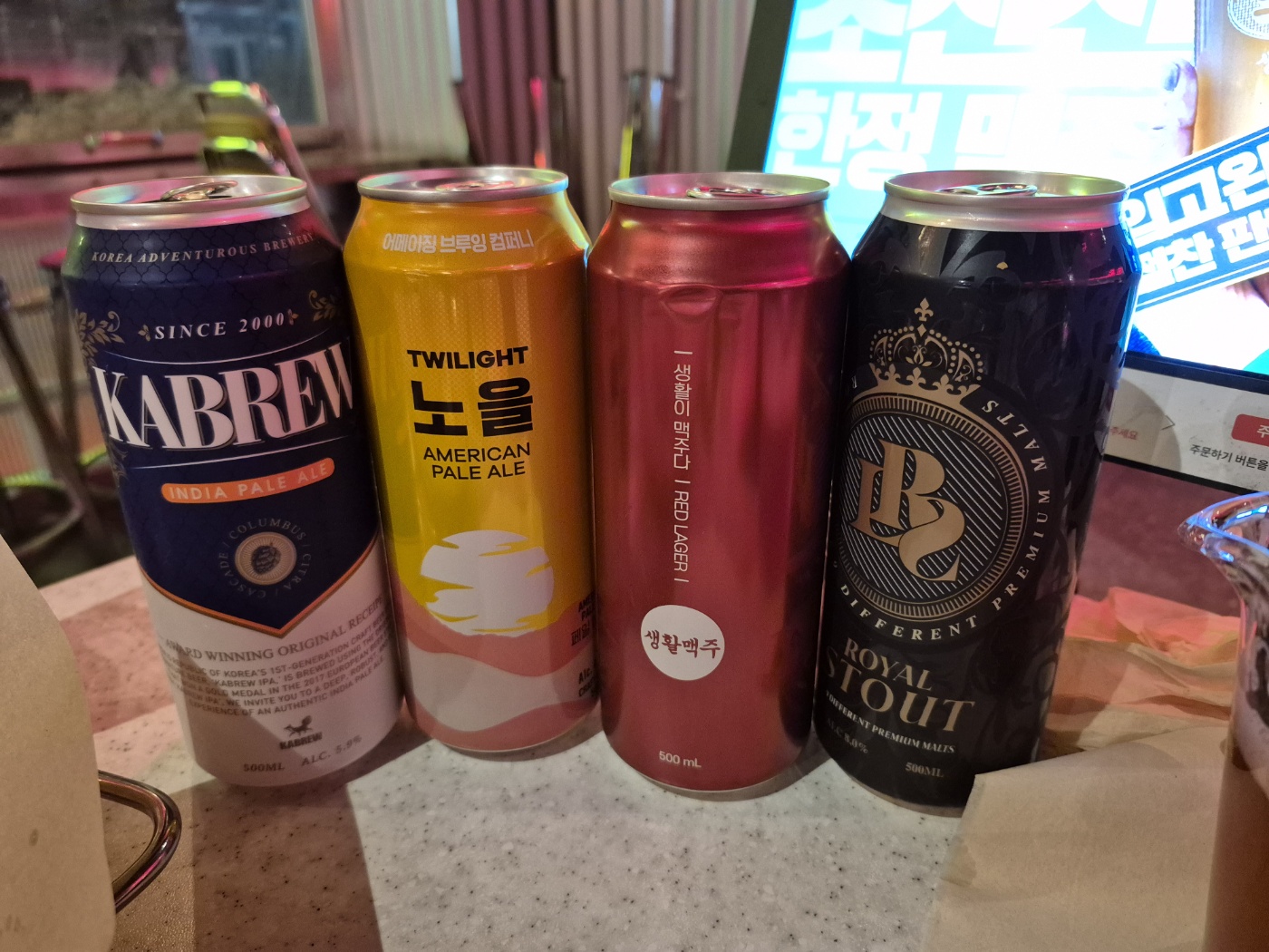 수제맥주를 4캔을 12,000원에 판매하는데 키오스크 메뉴에 없어서, 종업원을 불러서 따로 주문을 한다.