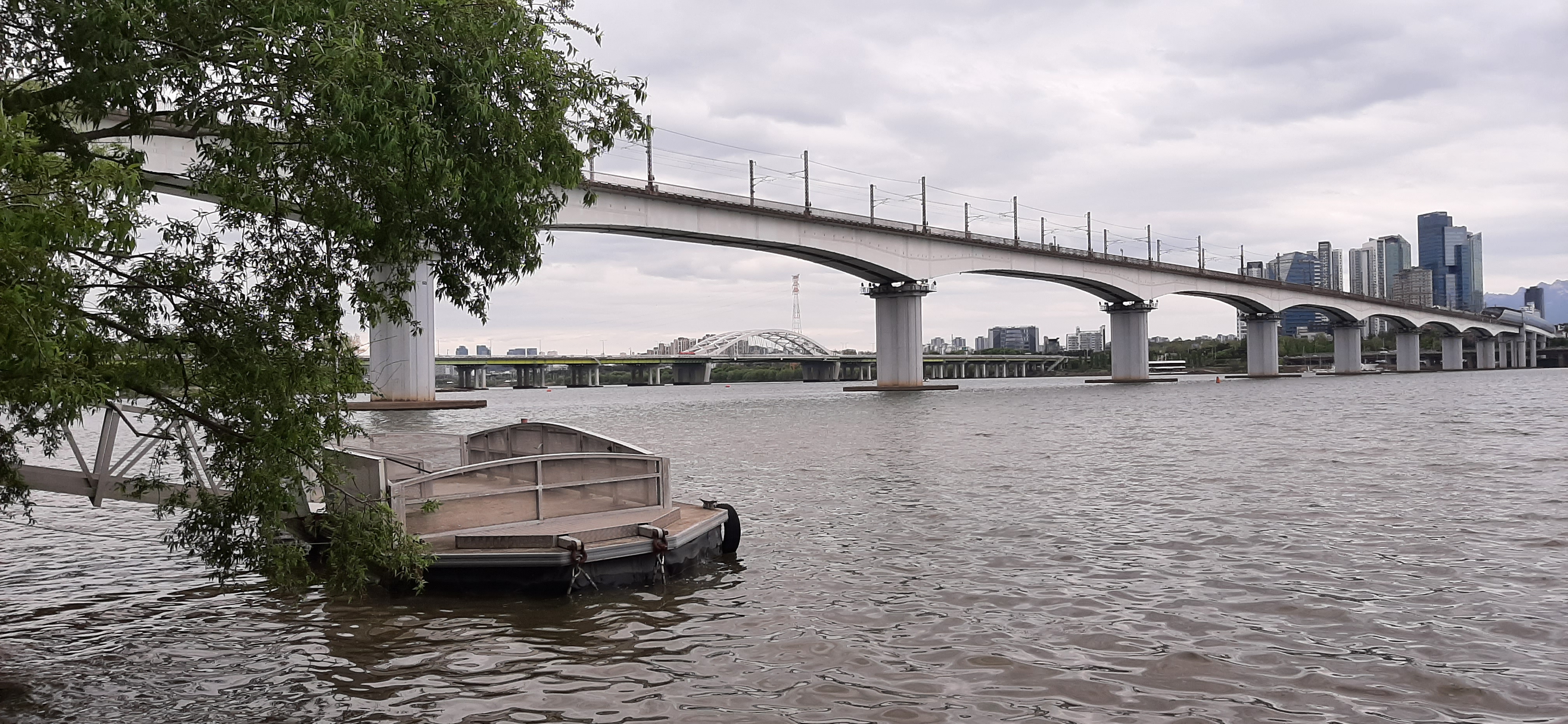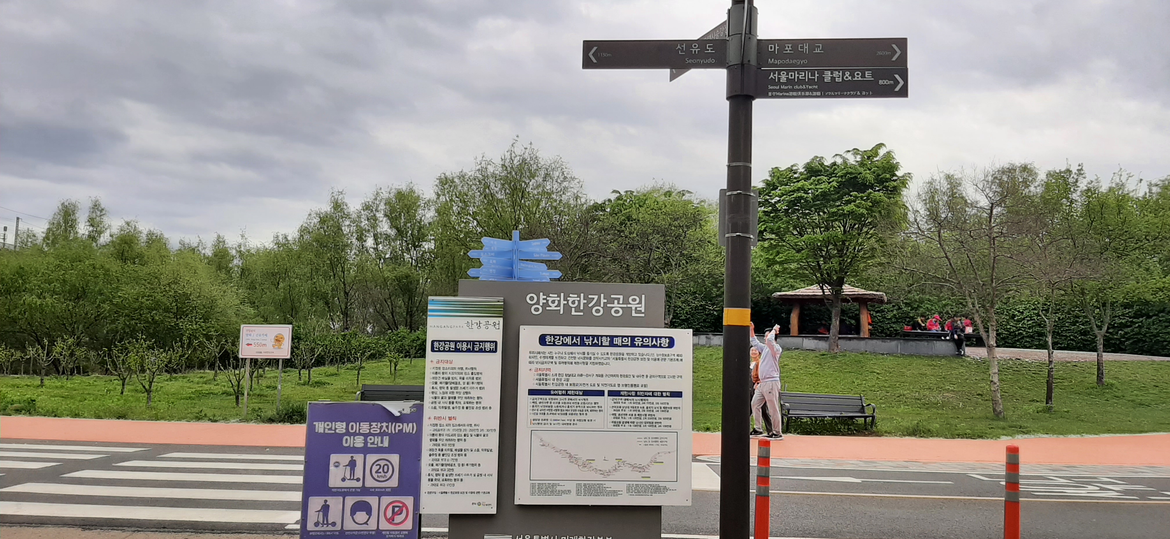 내가 가끔 가는 당산역 6번 출구 방향에 있는 송가네보쌈을 지나서 한강으로 천천히 걸어간다. 당산동은 교통의 요지이고, 생활하기 편리한 동네이다. 양화한강공원으로 가서 당산역 수상택시 정류장에 있는 바위에 걸터앉아서 한강을 바라본다.