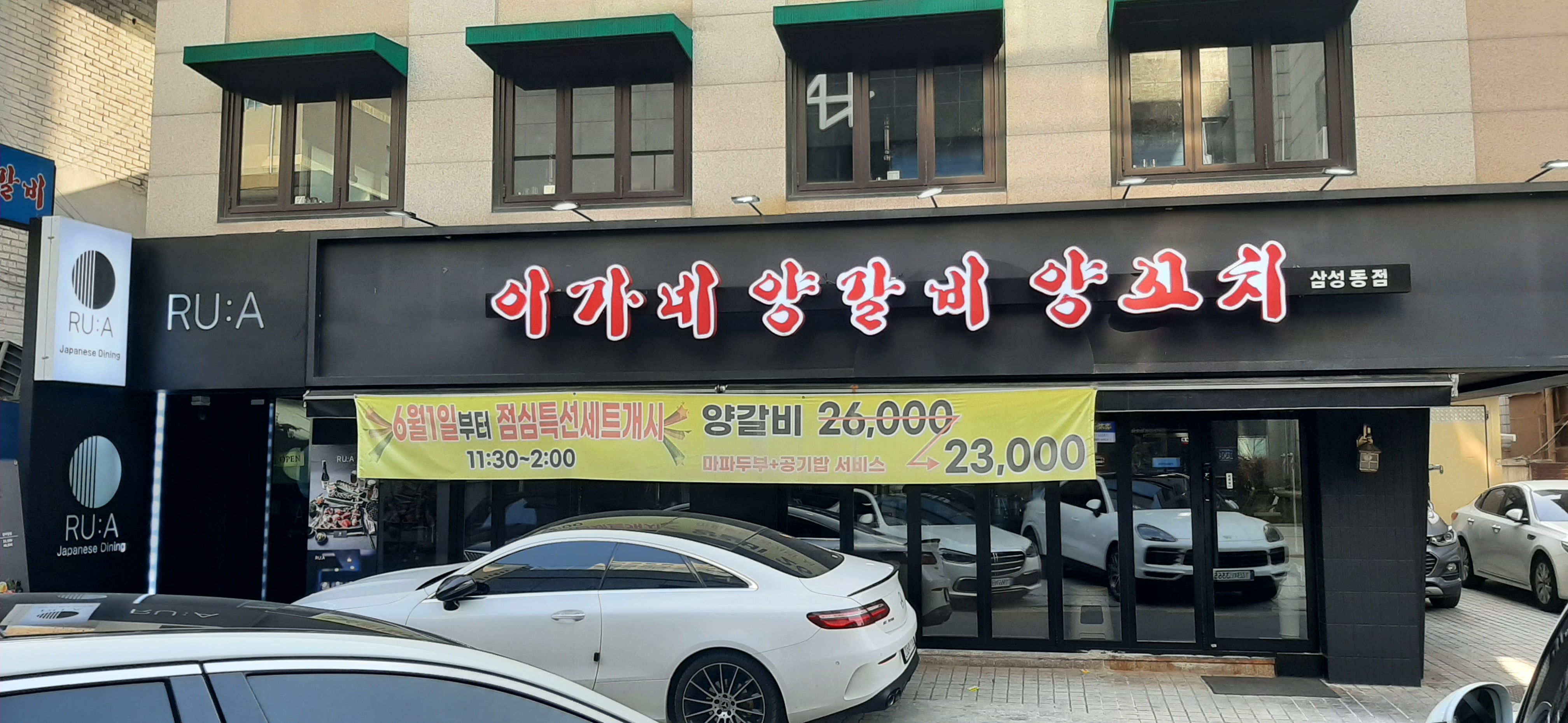 이가네 양갈비 양꼬치 삼성점은 일식집 이자카야 루아가 있는 건물 1,2층을 사용한다.