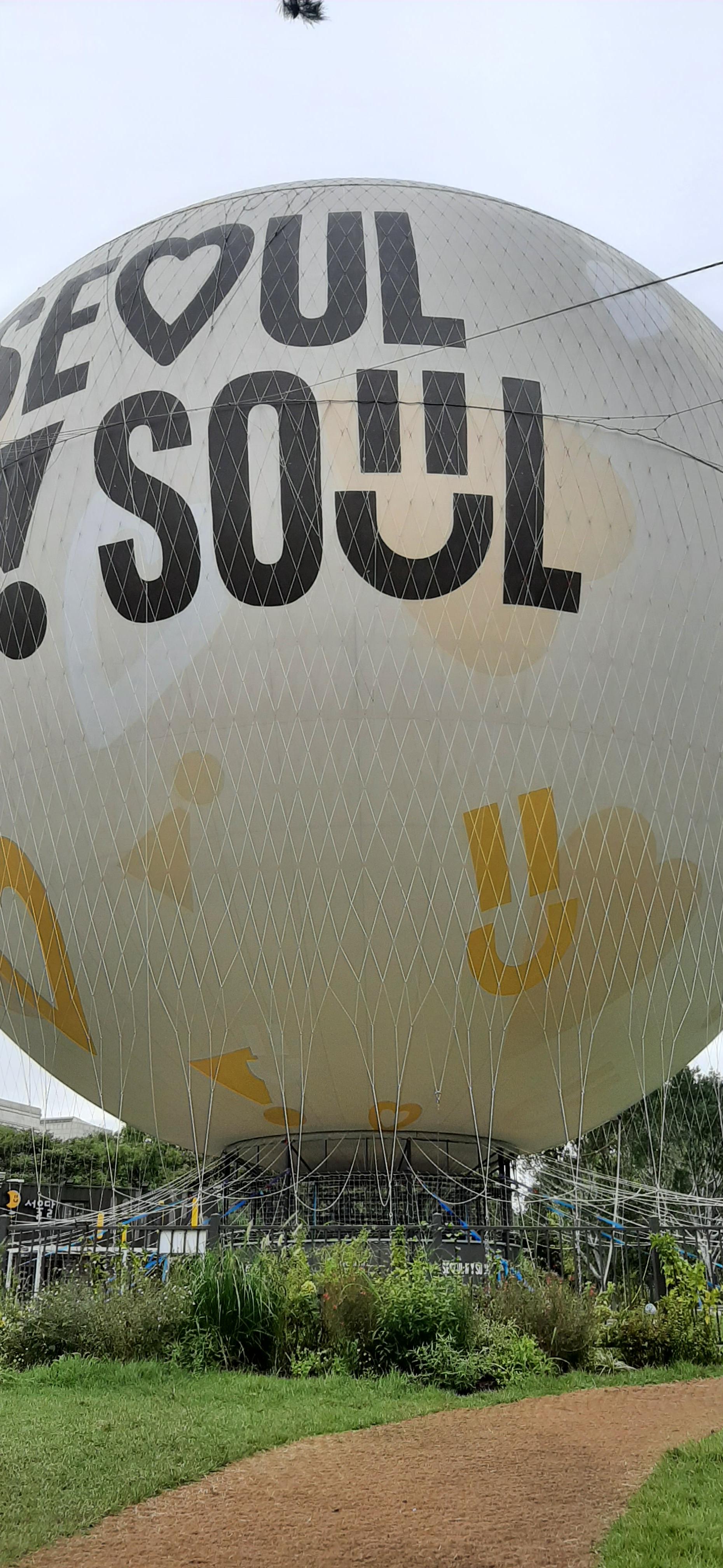 서울 여의도 상공에 계류식 가스 기구 "서울달(SEOULDAL)"이 두둥실 떠올랐다.