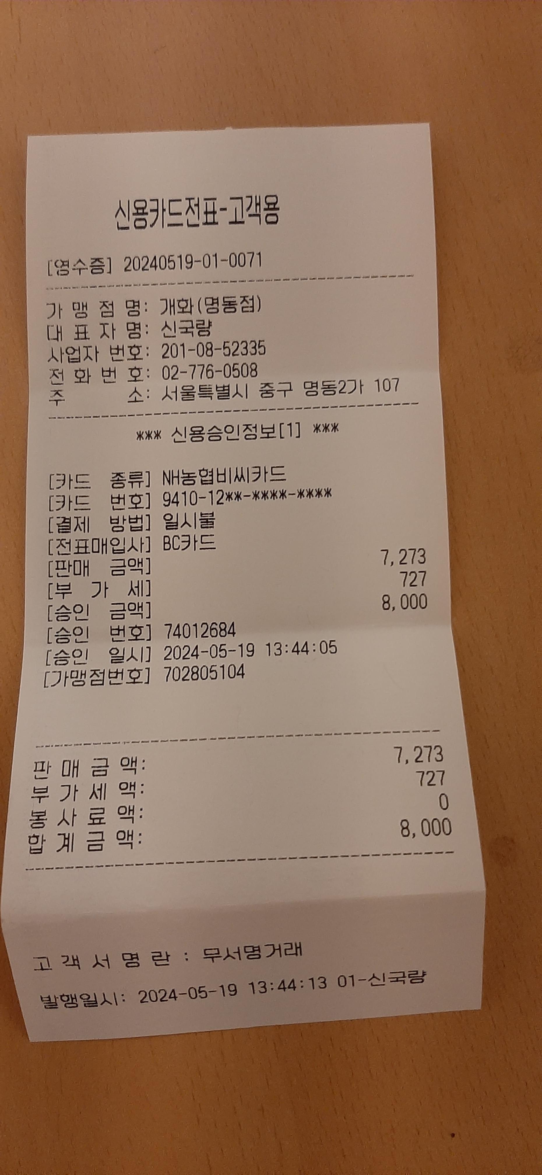 계산을 하면서 영수증에 내가 먹은 간짜장이 나오게 부탁을 했는데, 금액만 나오는 영수증을 준다.