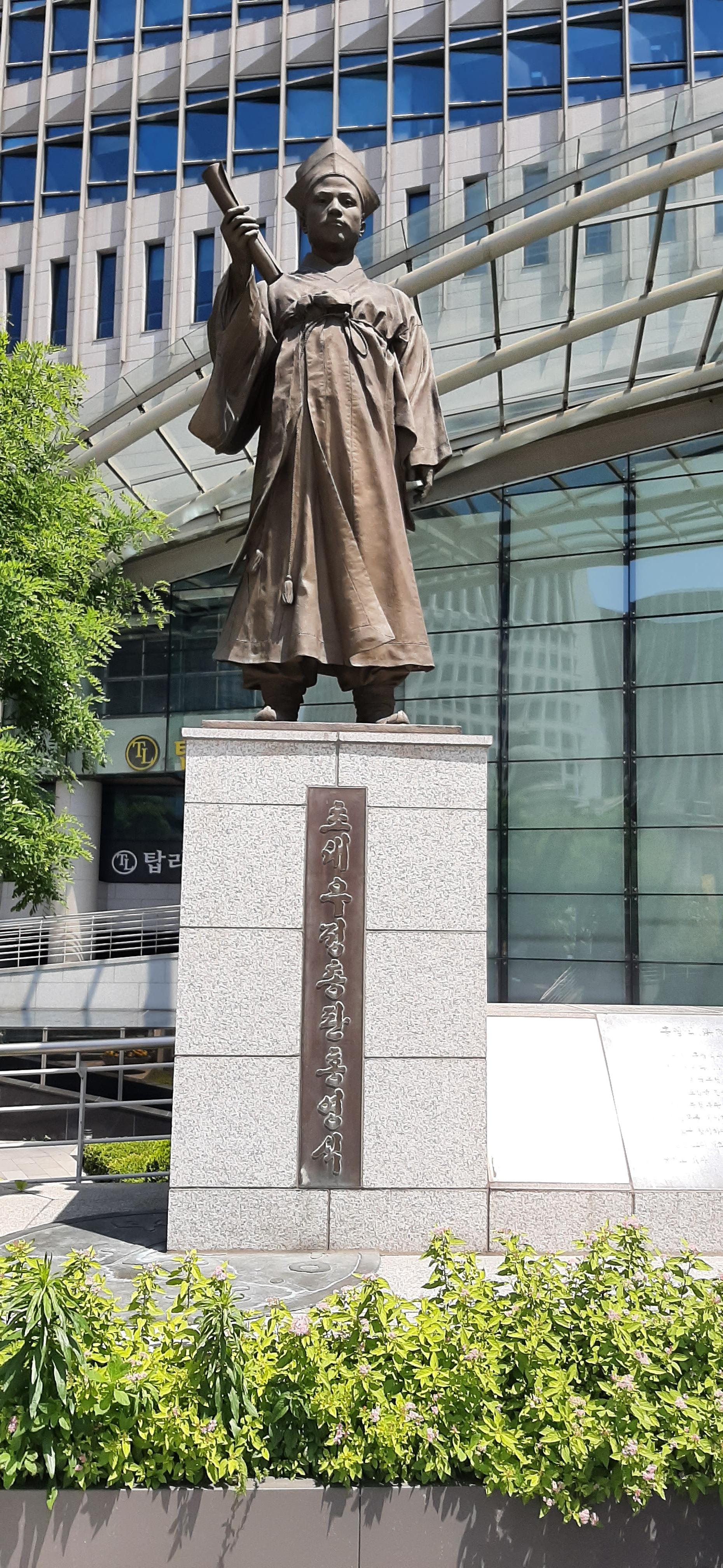 개화를 나와서 바로 앞에 서울중앙우체국에 있는 초대 우정총판 홍영식의 동상 사진을 찍는다.