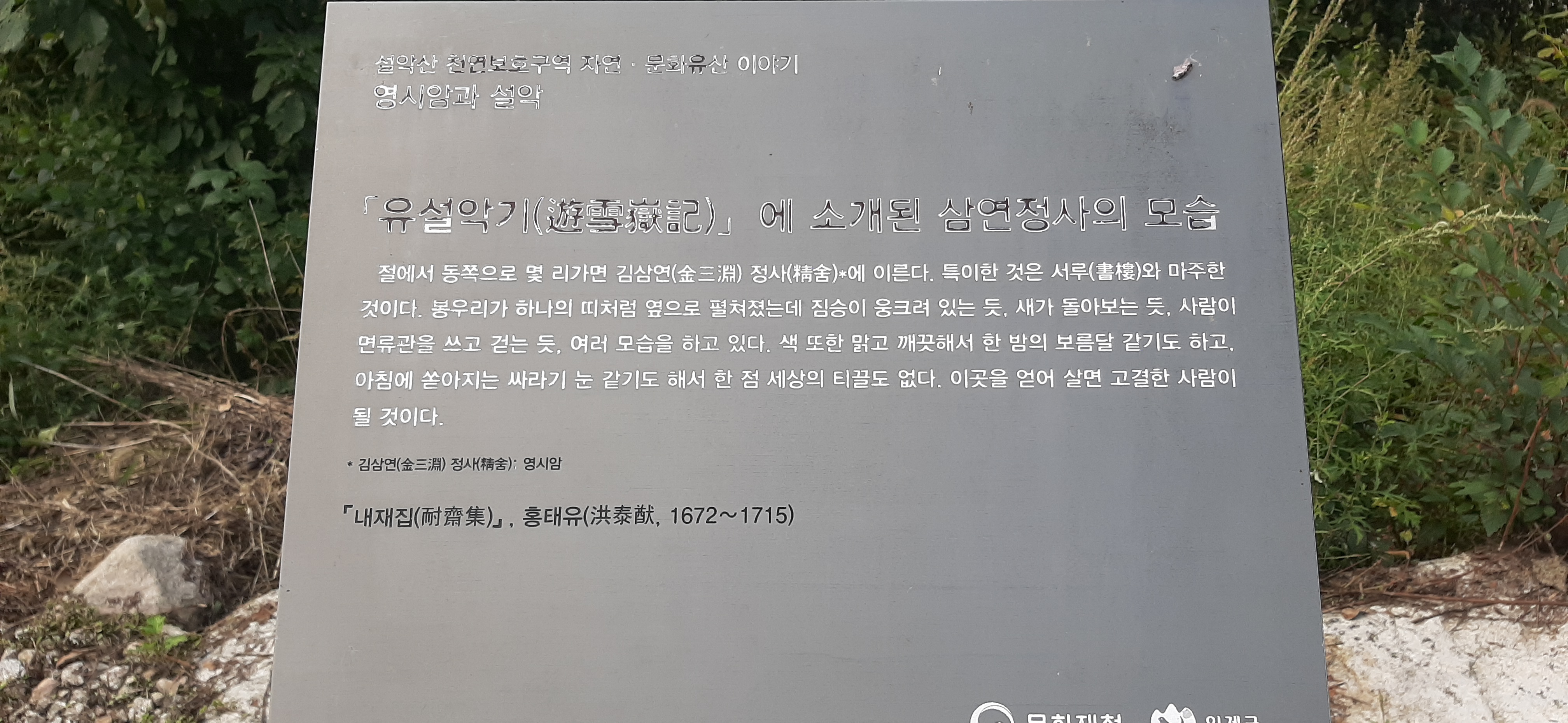 백담사로 출발한다. 잠시 가니 출입자를 계수하는 장치가 나오고, 백담탐방안내소가 나온다. 안내소에 들어가서, 설악산국립공원 탐방안내도와 만해마을 소책자를 챙긴다. 마치 소중한 보물이라도 찾은 듯 소책자를 챙기지만, 집에 가면 어디에 두었는지 알지도 못한다.