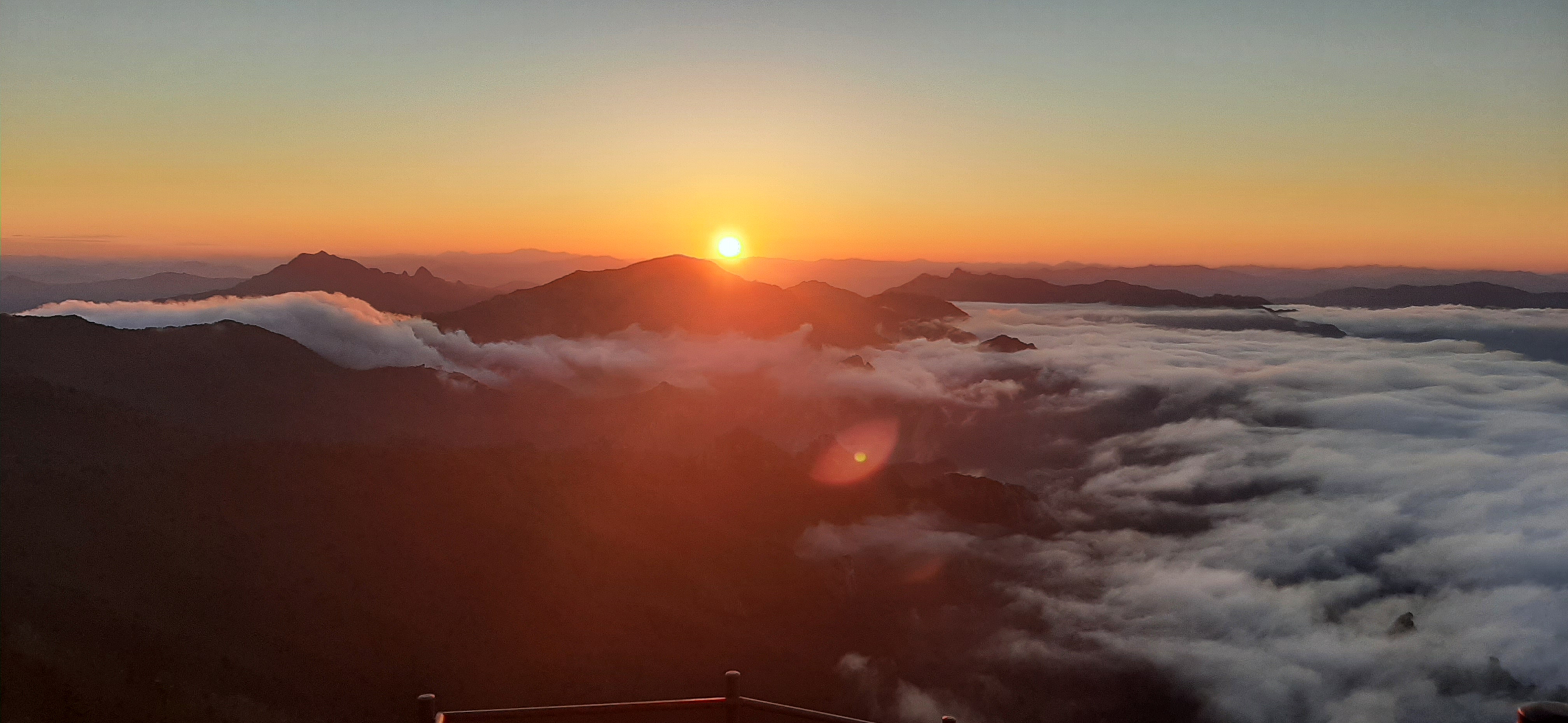 해가 지려고 먼 산 위에 해가 걸려서, 점점 어두워지니, 내 마음이 초조하고, 급해진다. 한참을 가도 소청대피소는 안 나온다. 방향은 정확히 잡았는데, 내 평생 이렇게 긴 400미터는 처음이다. 가는 길에 노을이 너무 아름다워서 사진을 찍는다.