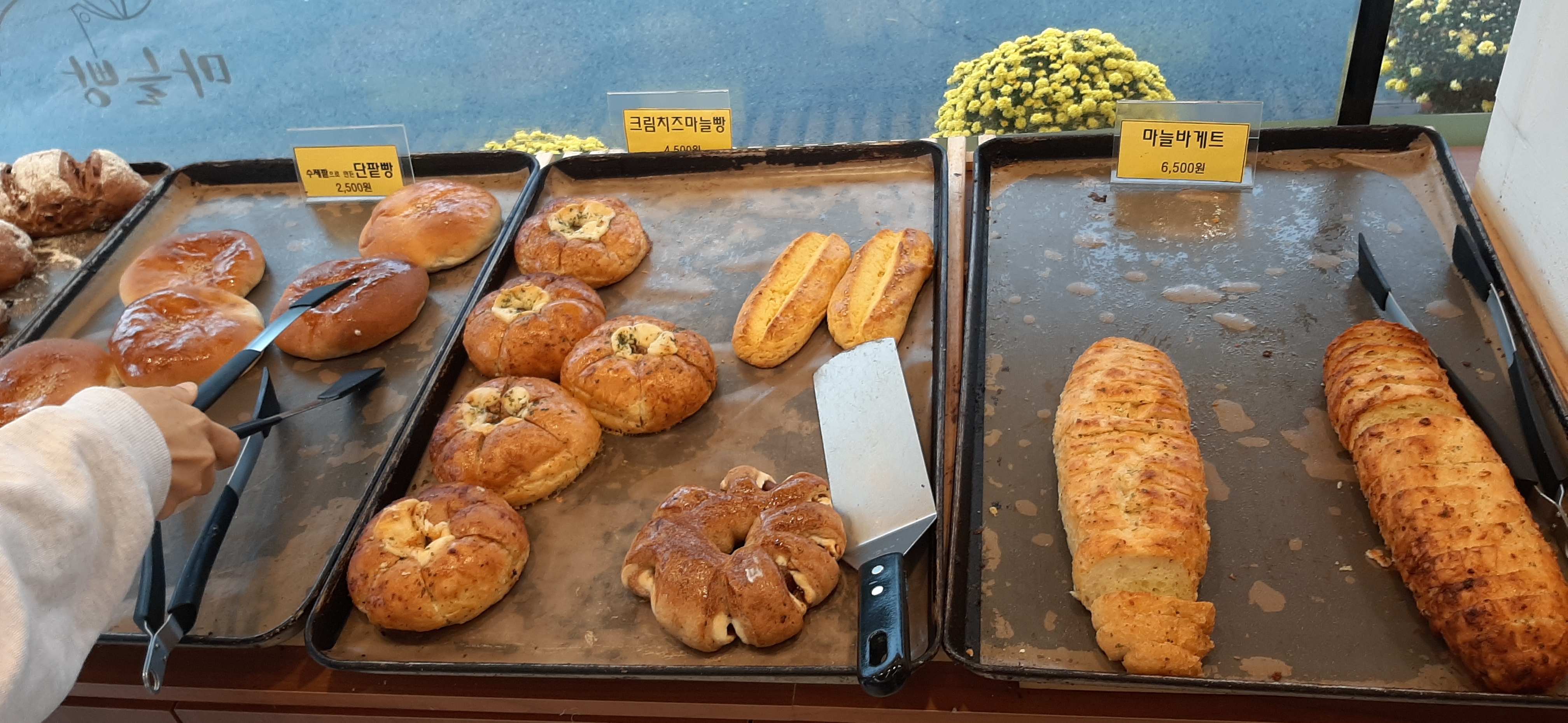 바케트, 꽈배기, 마늘빵 등 모두 기름이 많아서 고소하고 맛있다. 특히 마늘빵이 맛있고, 아주 좋은 마늘을 사용한다. 우리가 맛나게 먹는 중에도, 빵을 사려는 사람들의 줄은 계속 이어진다. 신기한 것은 대기 줄이 10여 명 정도이다. 줄이 너무 길면 사는 것을 포기하고 가는데, 이상하게도 항상 일정한 사람들의 줄이 이어진다.