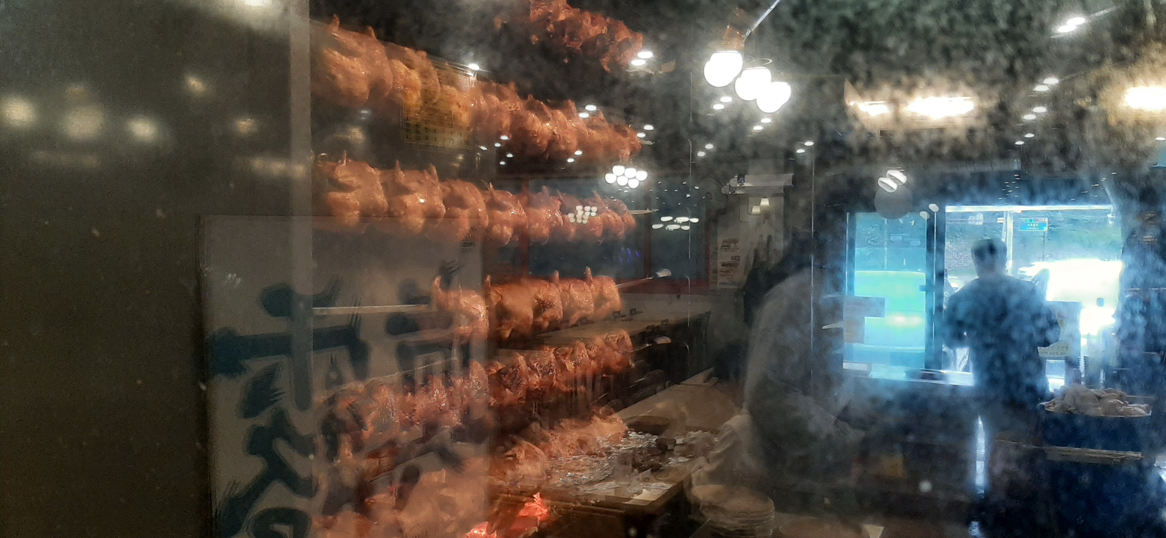 닭장작구이는 닭을 큰 꼬치에 여러 마리 끼워서, 장작불에 굽고, 돌솥에 누룽지를 만들어서, 장작에 구운 닭을 누룽지 위에 얹어서 나오는데, 누룽지도 맛있고, 기름이 쪽 빠진 닭도 담백하고 맛있다. 닭장작구이를 처음 먹는 나는 신이 나서 먹는다. 산행을 하여 목도 말라서, 시원한 생맥주도 술술 들어간다. 기분 좋다.