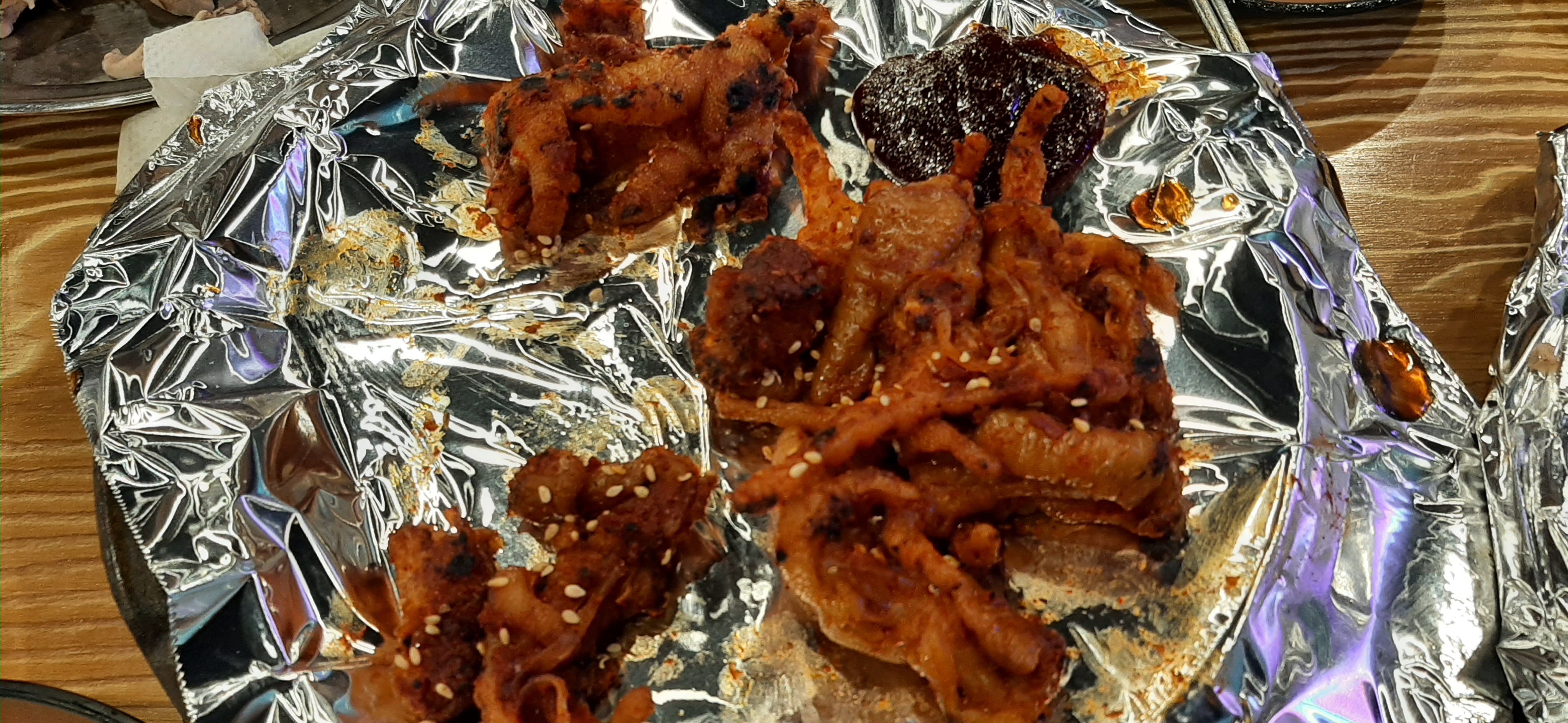 콜라겐을 보충하여 피부가 좀 젊어 보이려고, 매운 무뼈닭발을 계속 먹는다.